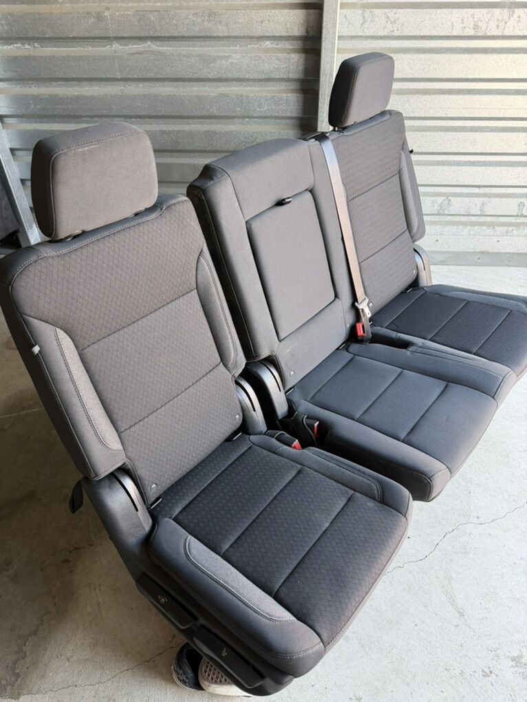 ApplePayUpgrading your interior? These 2025 Chevy Tahoe second-row cloth seats are genuine factory take-offs. While technically used, they were pulled from a brand-new vehicle with nearly zero miles. This is the perfect opportunity to swap your captain's chairs for a bench or refresh your current interior with OEM quality. Compatible Vehicles (2021–2025) These seats are designed for the T1 platform and are a direct bolt-on for the following models within the same wheelbase: Chevrolet: Tahoe (LS, LT, Z71, RST) Chevrolet: Suburban (LS, LT, Z71, RST) GMC: Yukon & Yukon XL Cadillac: Escalade & Escalade ESV Note: While they physically fit, please verify if your vehicle requires a 60/40 bench or bucket configuration, as Tahoe and Suburban floor humps can vary slightly. Product Details Condition: Like-new Used condition. May have minor cosmetic blemishes from storage or be missing a few mounting bolts. Material: Durable Factory Jet Black Cloth. Features: Integrated headrests, 60/40 split-bench design, and manual folding levers. OEM Part Numbers Reference these numbers for exact fitment via the GM Parts Warehouse: Seat Cover (40% Side): 26511372 Seat Back Cover: 85551245 Headrest (Right): 85553904 Headrest (Left/Center): 85553892