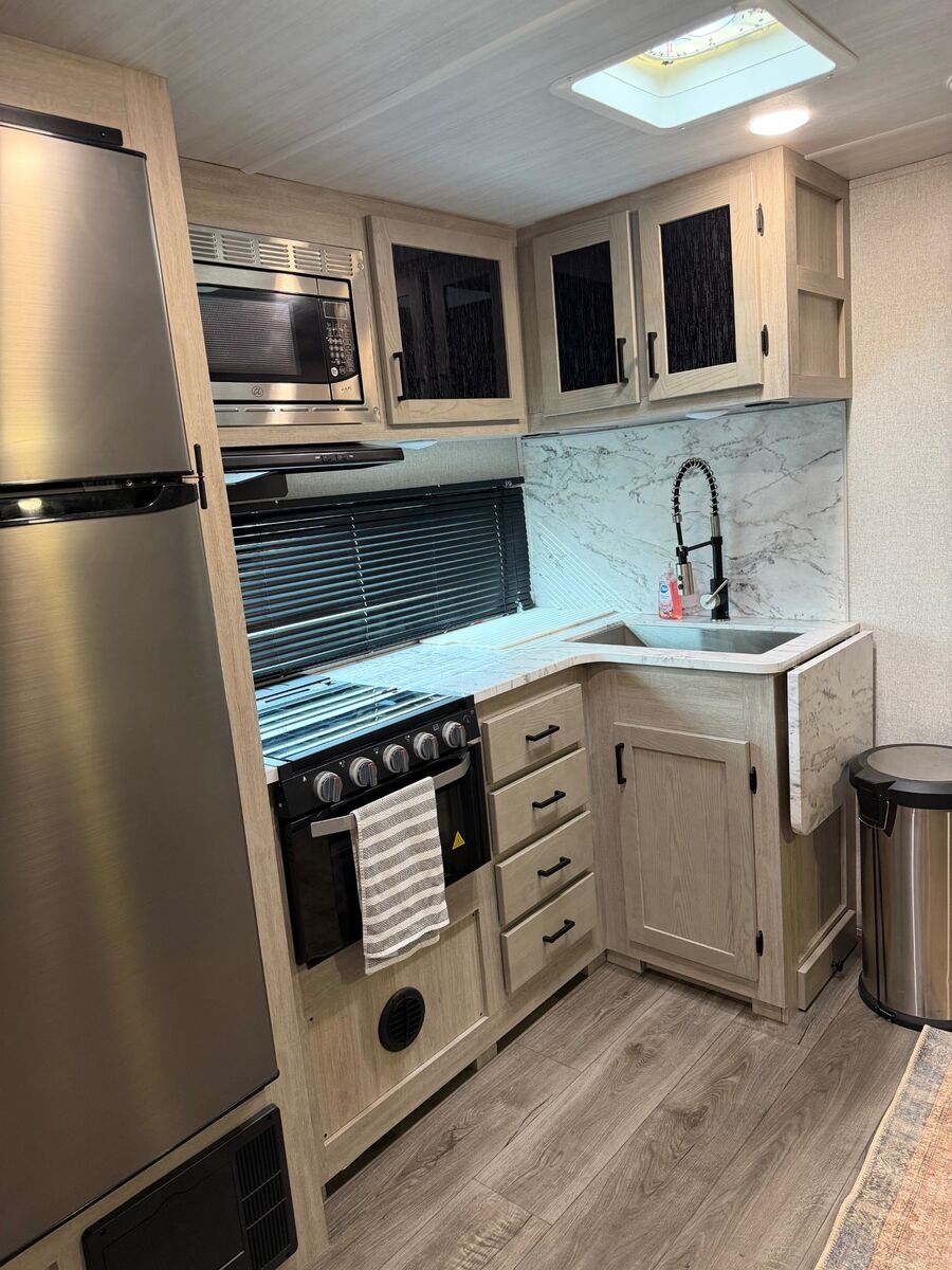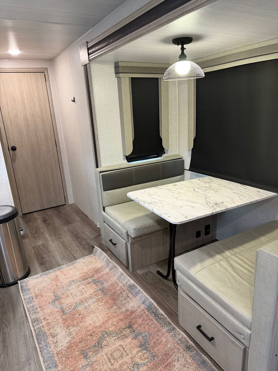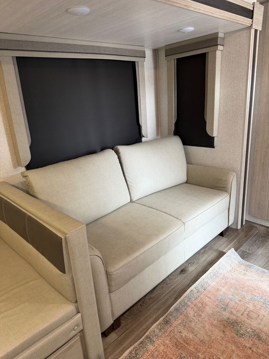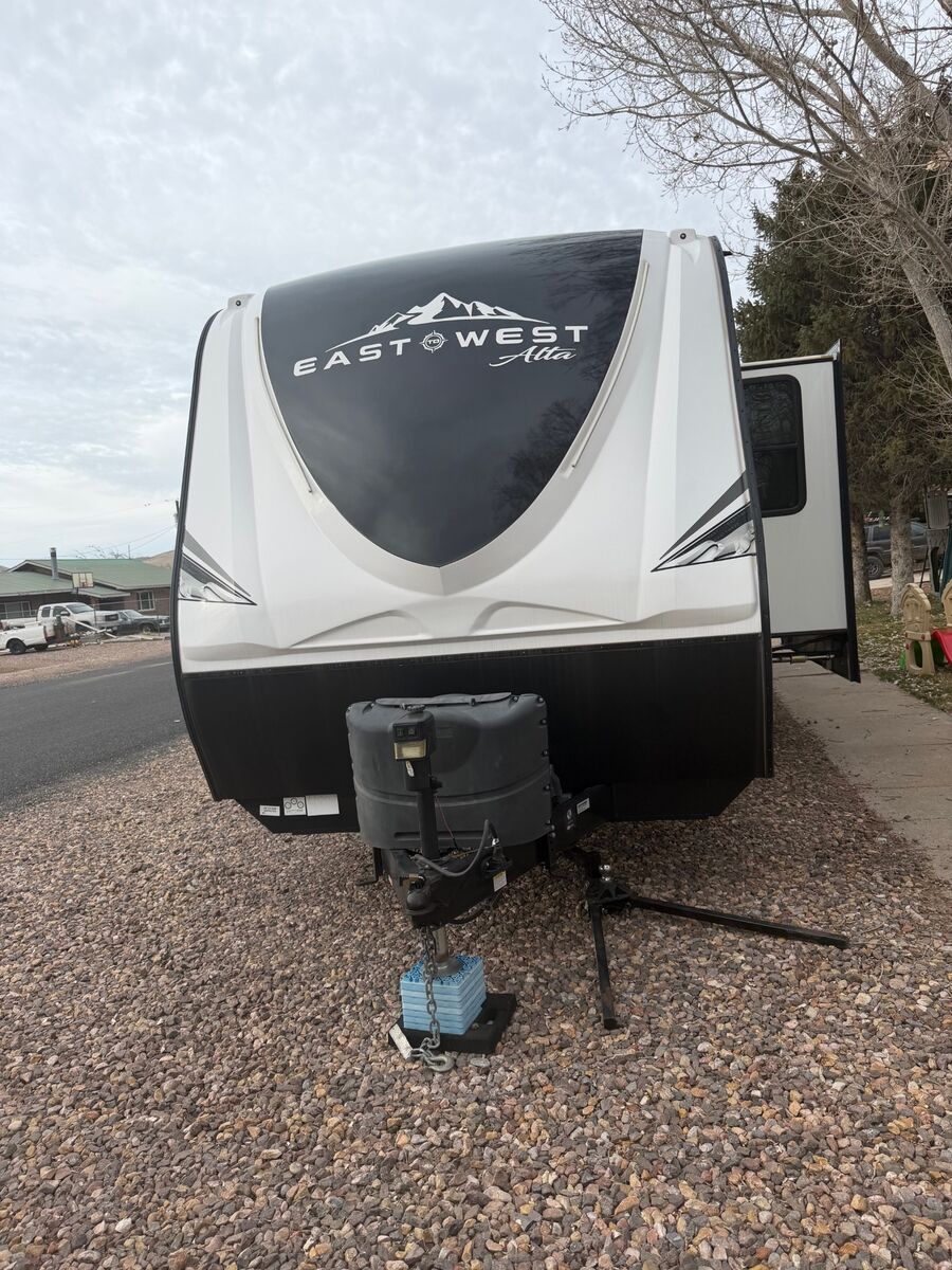 VenmoFor sale is a 2022 model East to West Alta 31.5 foot travel trailer. This trailer is in excellent condition, having only been used several times. This features two slide outs, with front and rear doors as pictured. The rear door enters directly into the bathroom. Has a king size bed in the front, and 3 bunk beds in the rear section. This trailer also has an outdoor kitchen with a fridge and air fryer. Solar panels on the roof. Sofa and dining table also convert into beds. This trailer has not been moved much, and has had very few road miles put on it. Having the rear door enter the bathroom is handy for kids (or adults) coming in and not having to go through the entire trailer. Text is best. The trailer is in Enterprise, Utah.