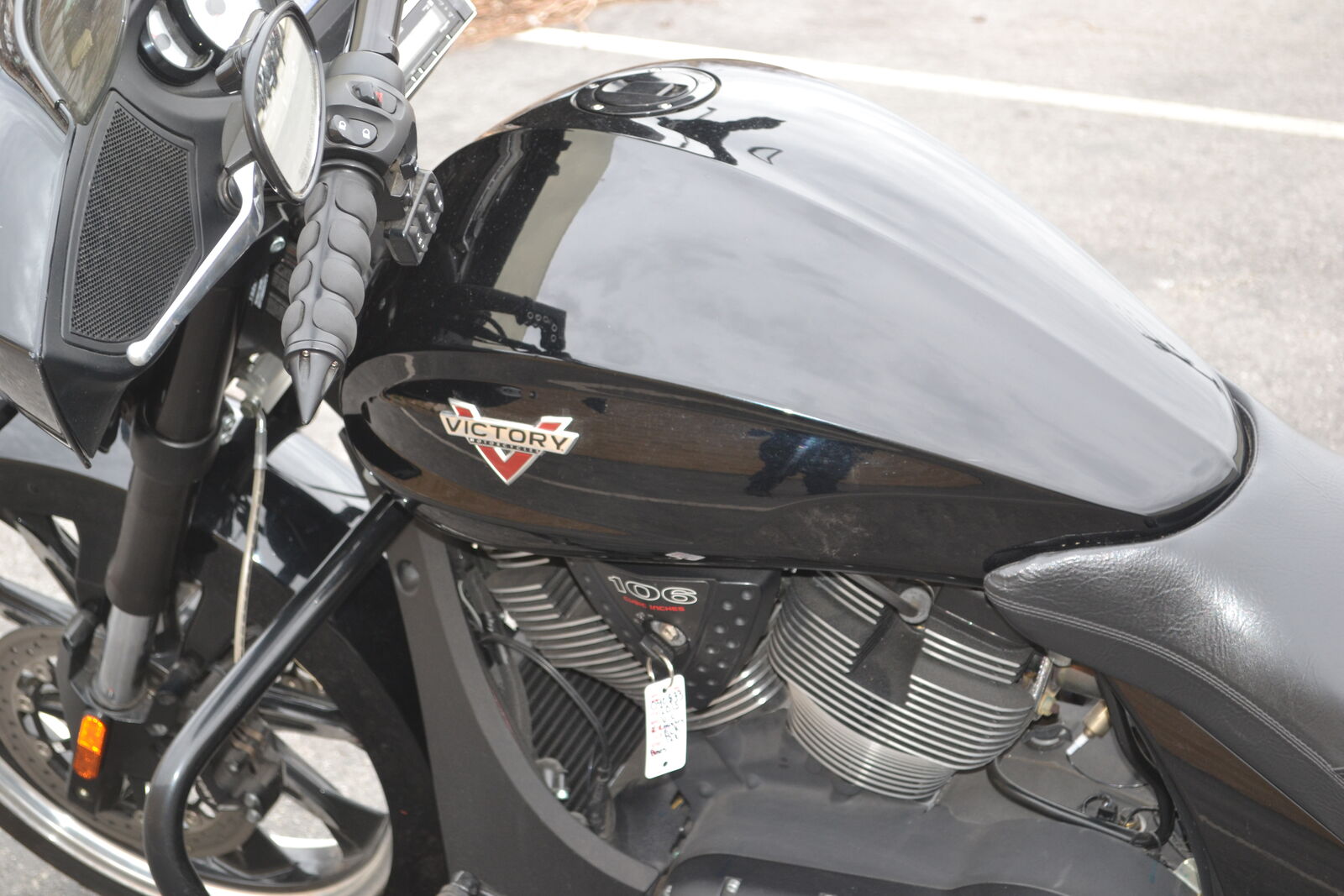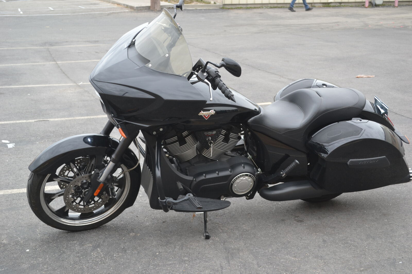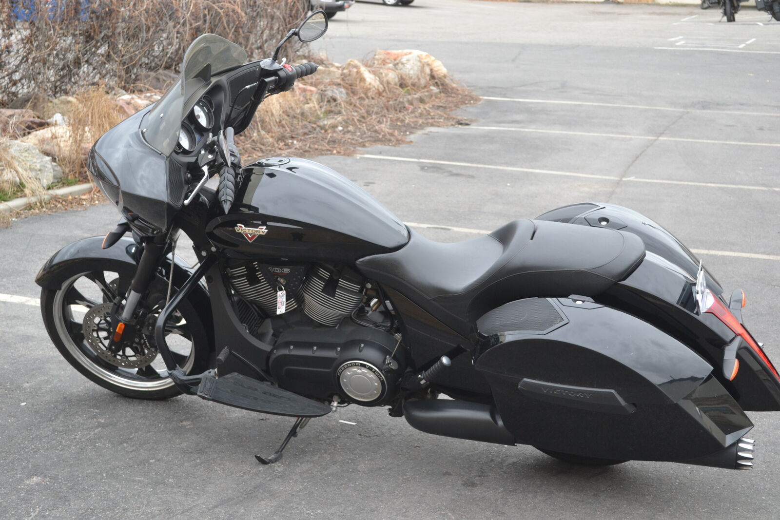 Hard to beat this touring bike for the money! It has a 106ci engine and 6 speed transmission. It has an upgraded Victory Magnum 21" front wheel and tire. It also has a LED headlight, speaker bag lids, and upgraded exhaust. Clean and clear title with only 17k miles.