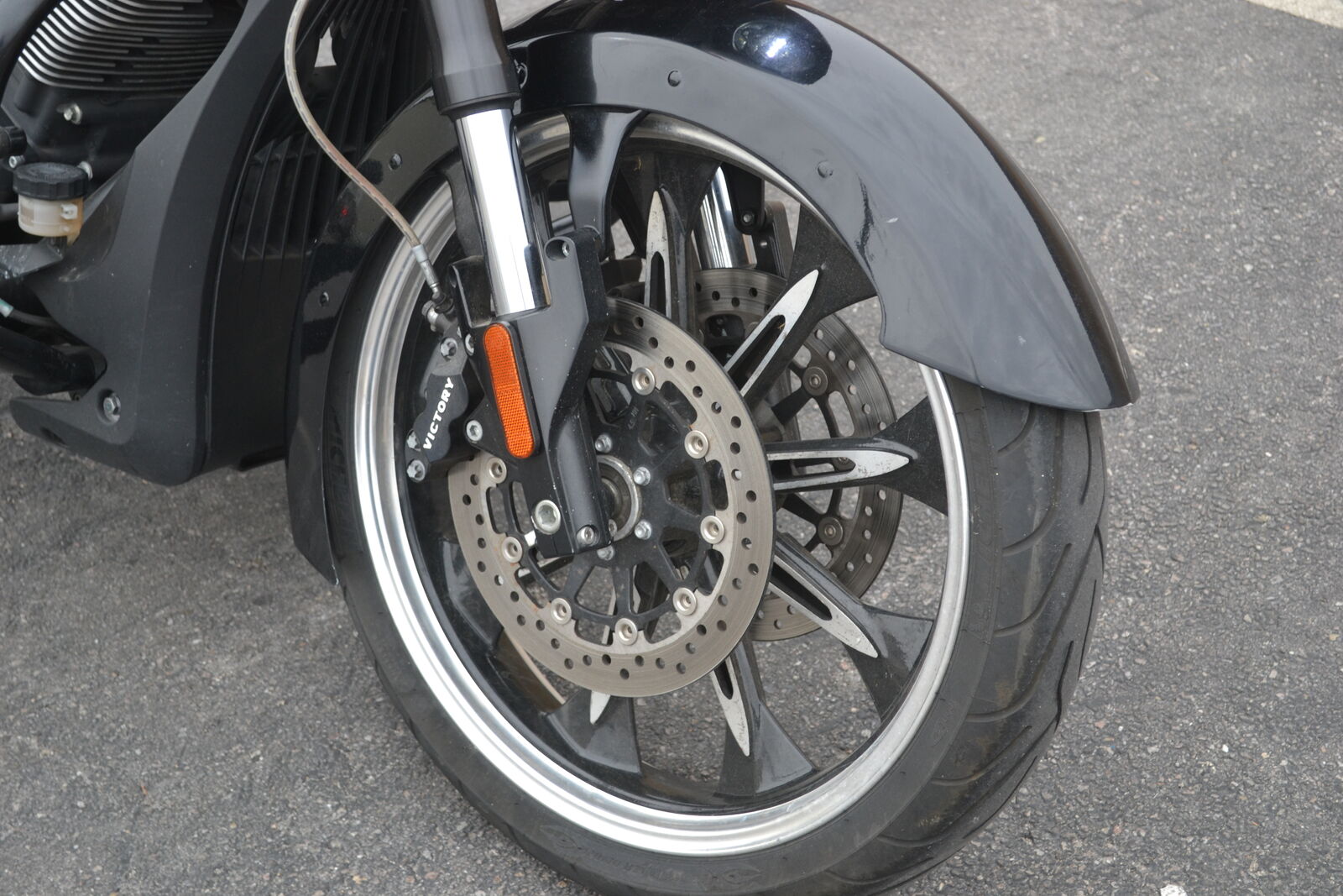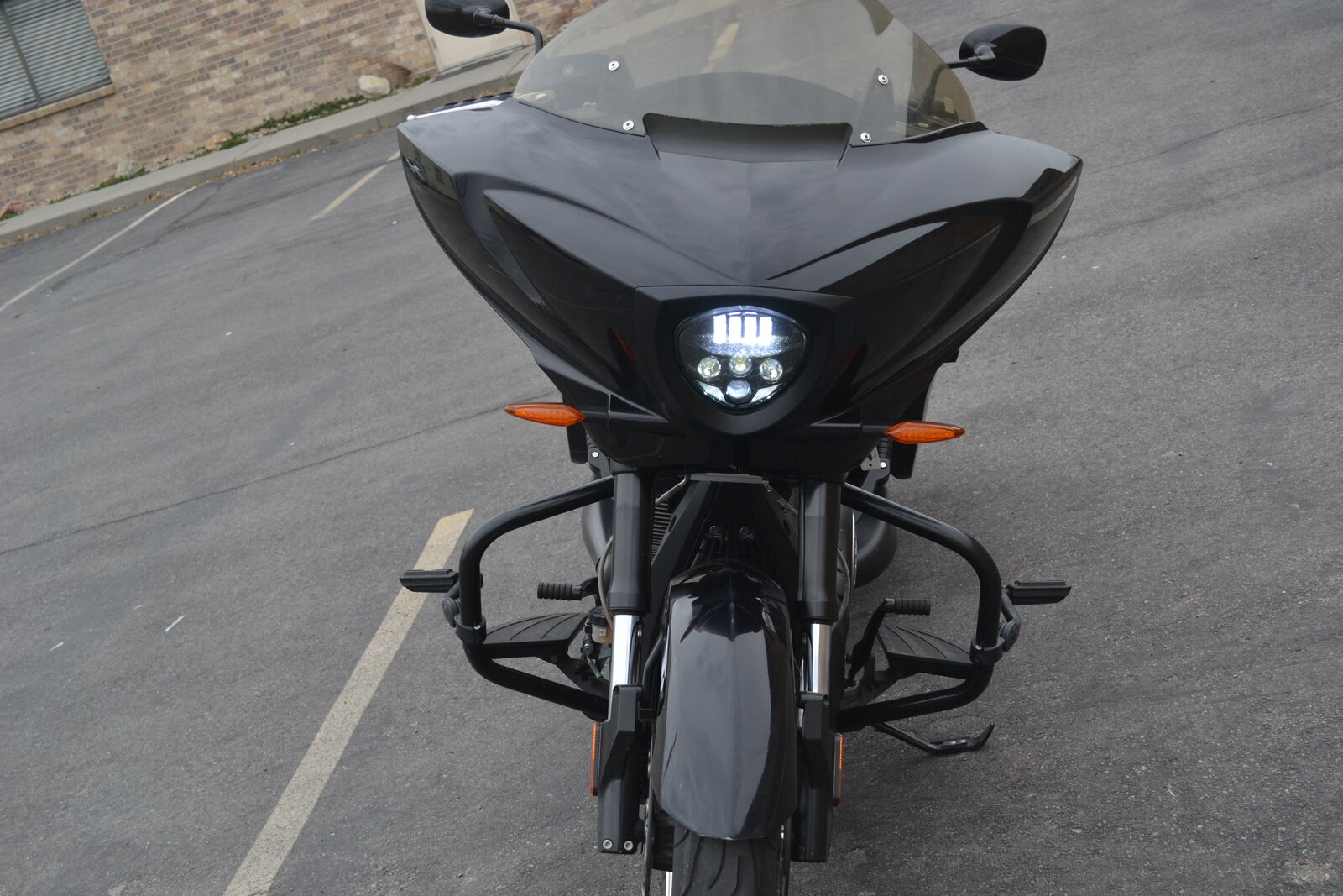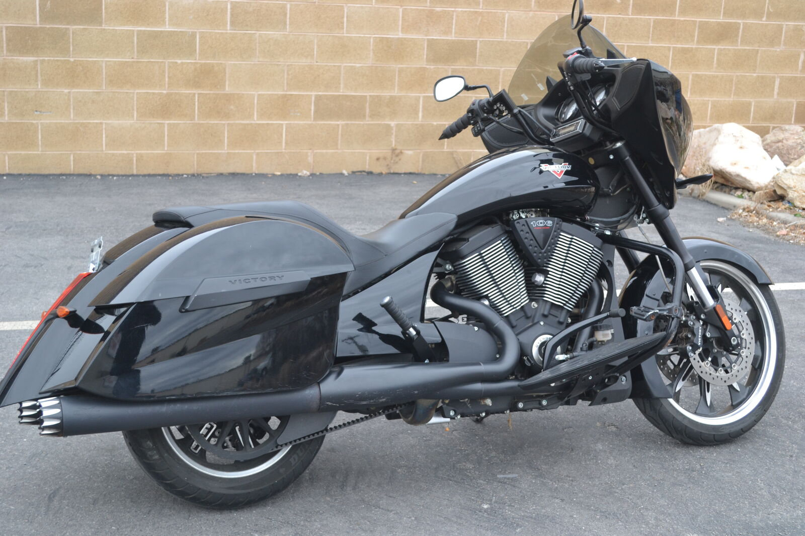 Hard to beat this touring bike for the money! It has a 106ci engine and 6 speed transmission. It has an upgraded Victory Magnum 21" front wheel and tire. It also has a LED headlight, speaker bag lids, and upgraded exhaust. Clean and clear title with only 17k miles.