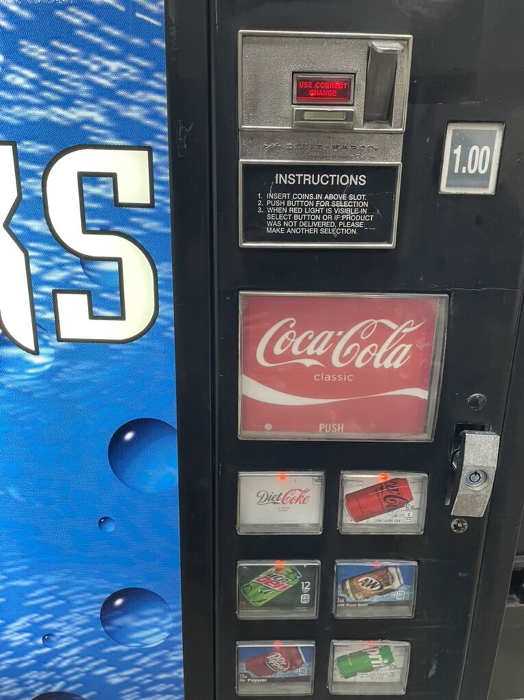 All eight columns dispense properly with no jams. Coin mechanism work correctly with no issues. Door lights work correctly. They could be updated to LEDs. Out of stock lights and Use Correct Change light function properly. Refrigeration system works great. Temperature can be seen in the photos. I have listed the size and weight of the machine as well.