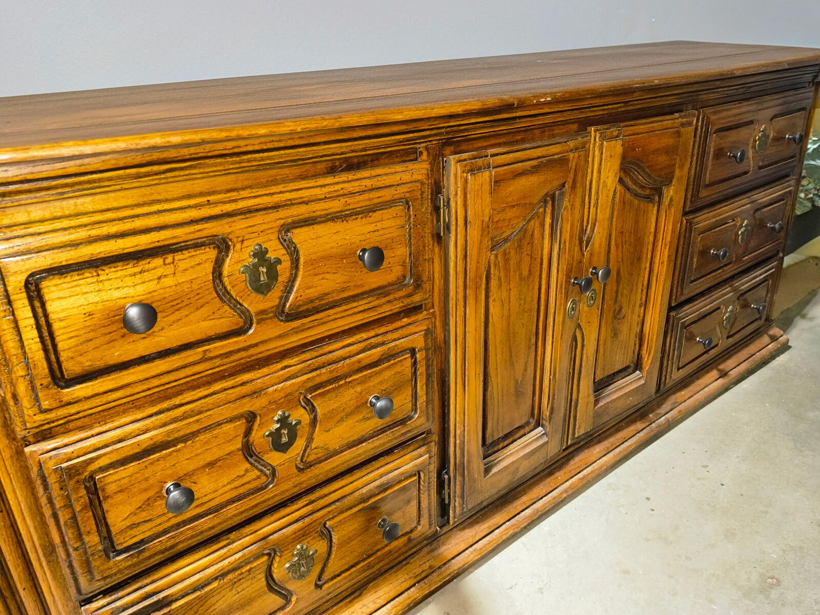Condition: Excellent vintage condition. All drawers glide smoothly, hardware is mostly original and complete, and the finish has been well-preserved..