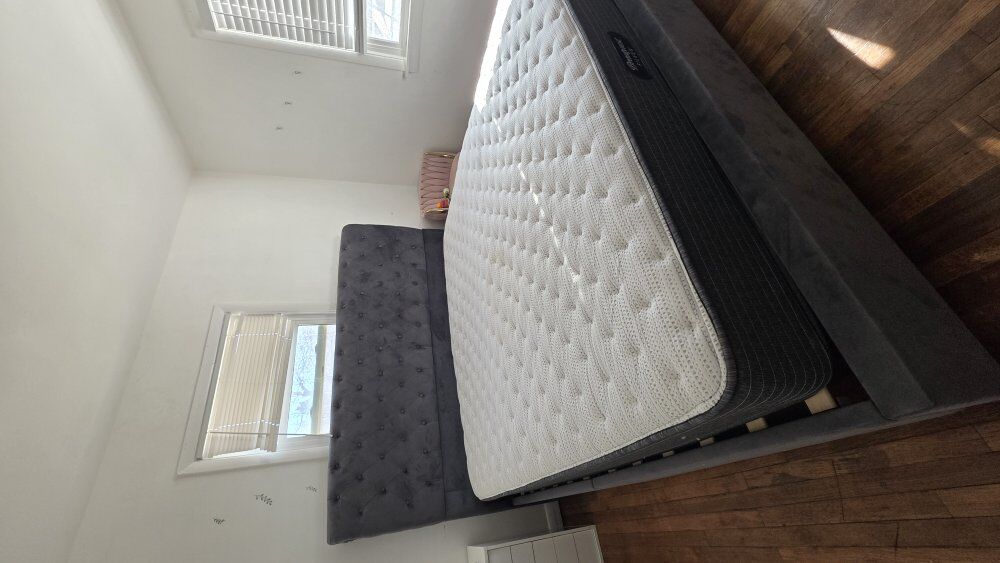 Cama mas Colchón tamaño KING SIZE. El Colchón libre de animales, de manchas o polvo. ! Solo 7 meses de uso. Se vende por mudanza!