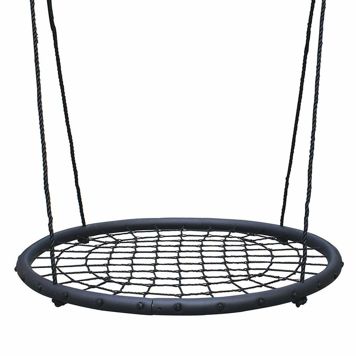 VenmoThis is a round web or spider-web tree swing for outdoor use. The swing features a sturdy steel frame wrapped in padding and a woven net seat made of durable, UV-resistant nylon or polyethylene ropes. It is designed for comfort and safety, often able to support multiple children or even adults, with weight capacities typically ranging from 220 lbs to over 600 lbs depending on the model. The ropes are often adjustable for different locations and come with necessary hardware like carabiners and hanging straps. These swings are popular for backyard play and can be attached to a tree branch or existing swing set.