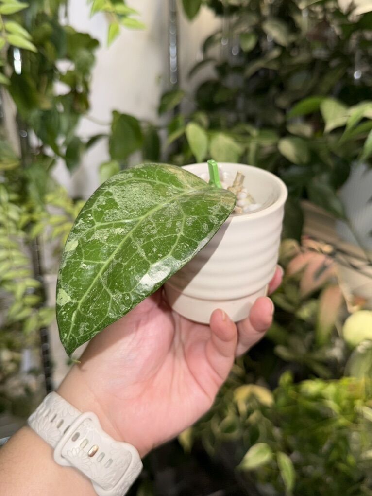 VenmoRooted and has a growth point. Leaves can get bigger under lower light. Cover pot not included.