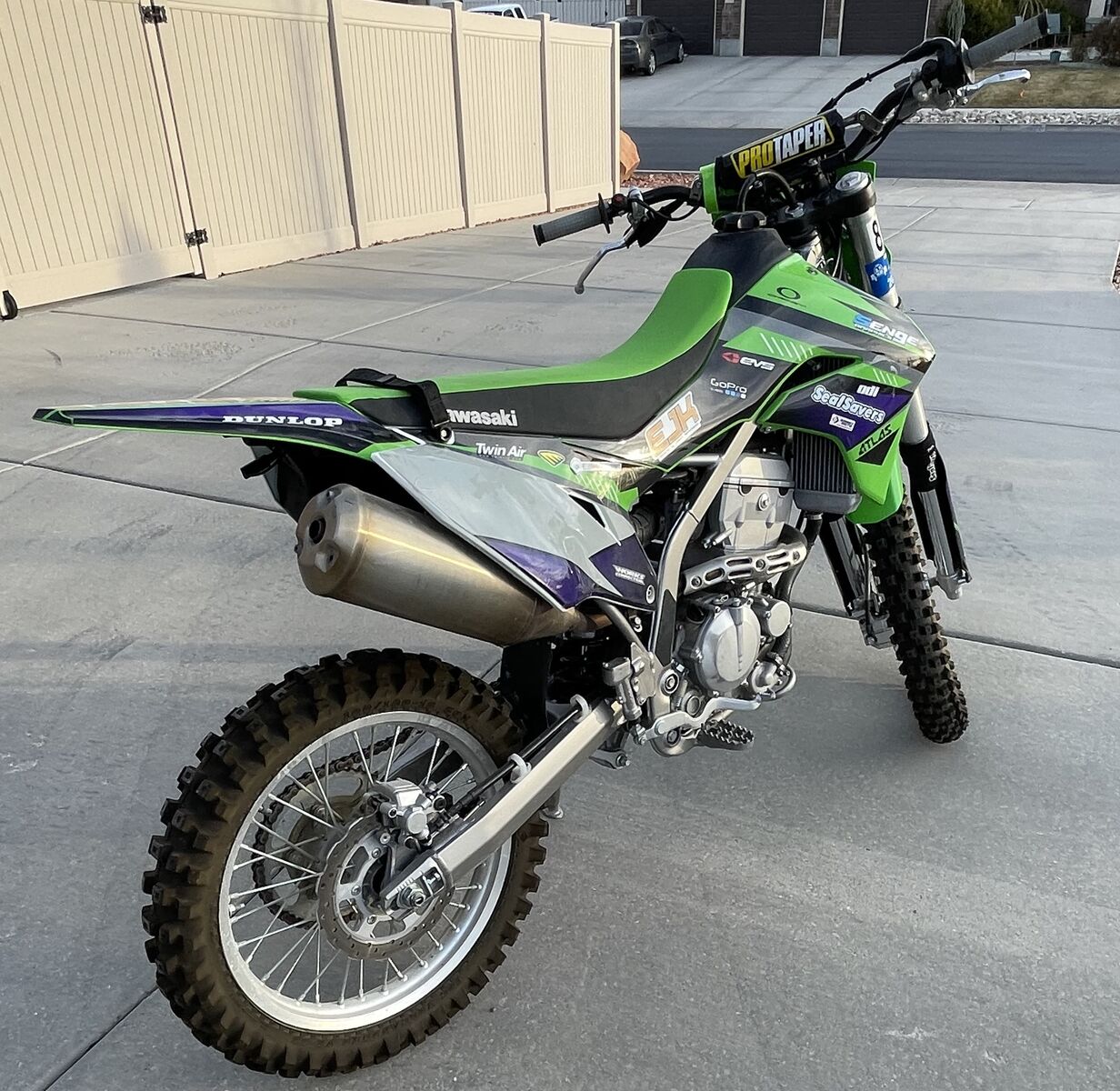 2022 Kawasaki KLX300R for sale. Very well taken care of, regular maintenance and always stored in garage. New battery. Pro Taper handlebars.