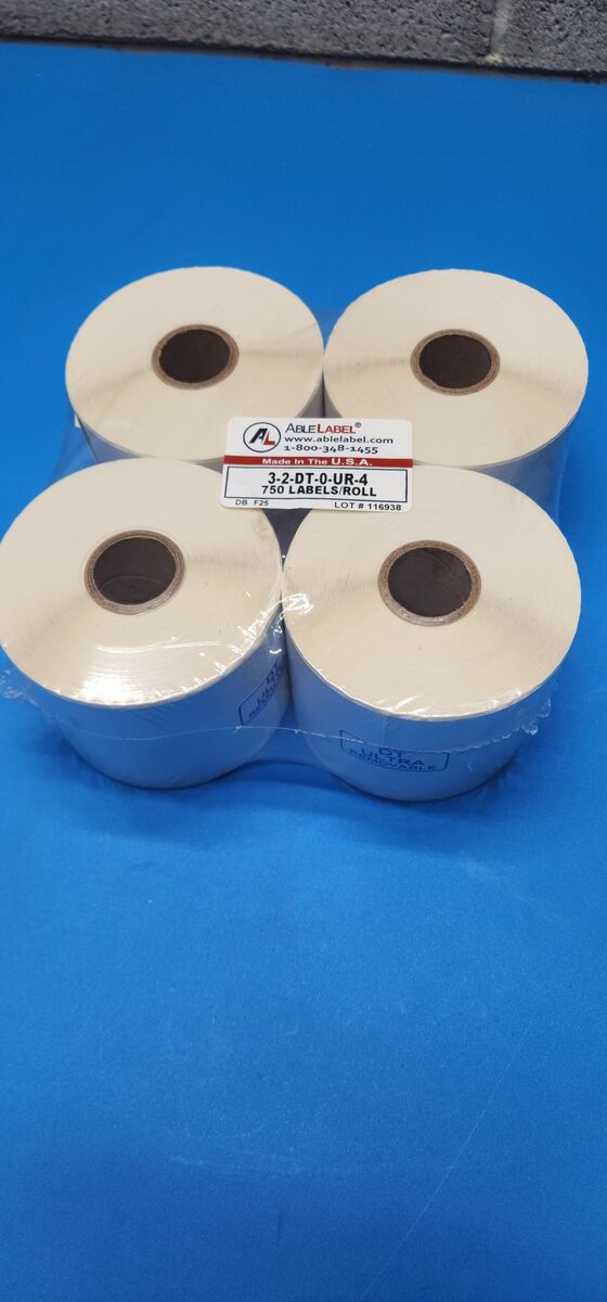 3" x 2" Direct Thermal White Ultra-Removable Label - 4" OD, 1" Core - Desktop Printer Label Rolls