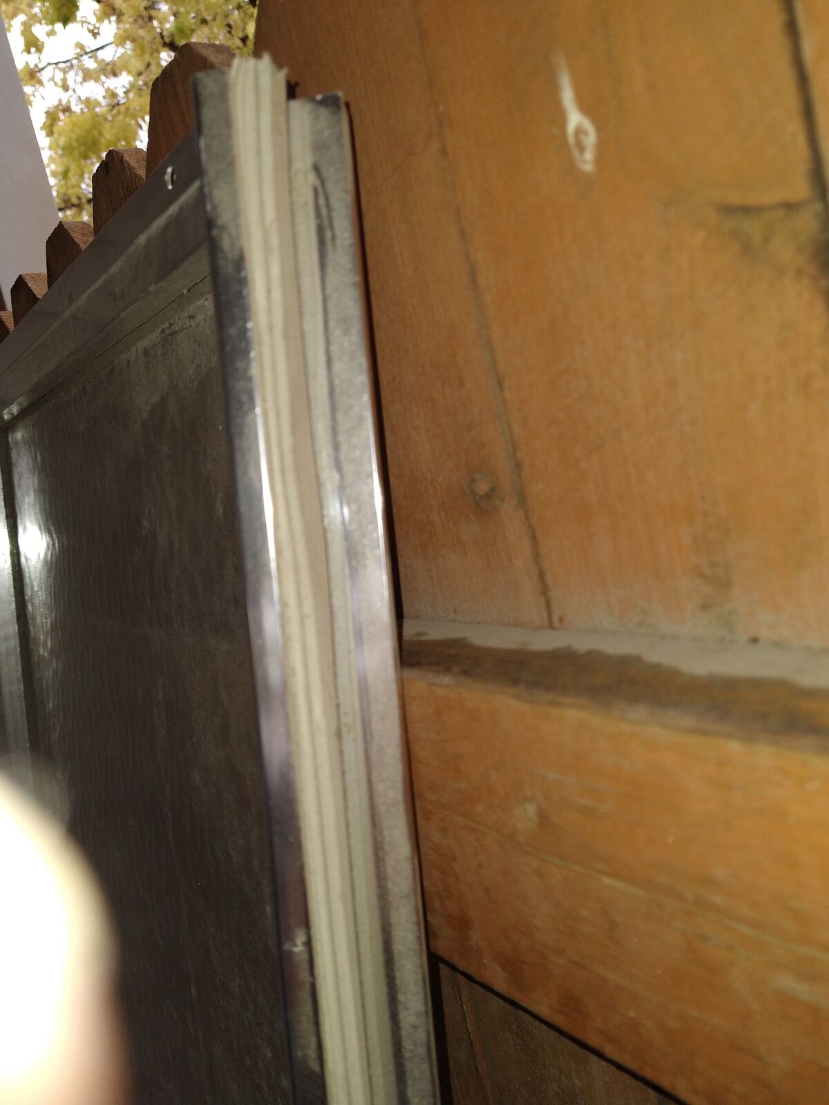 Have the door pins but it lacks the stainless screws. The glass to surrounding frame seals are good but seals are missing around the door to seal the frame to frame parts.