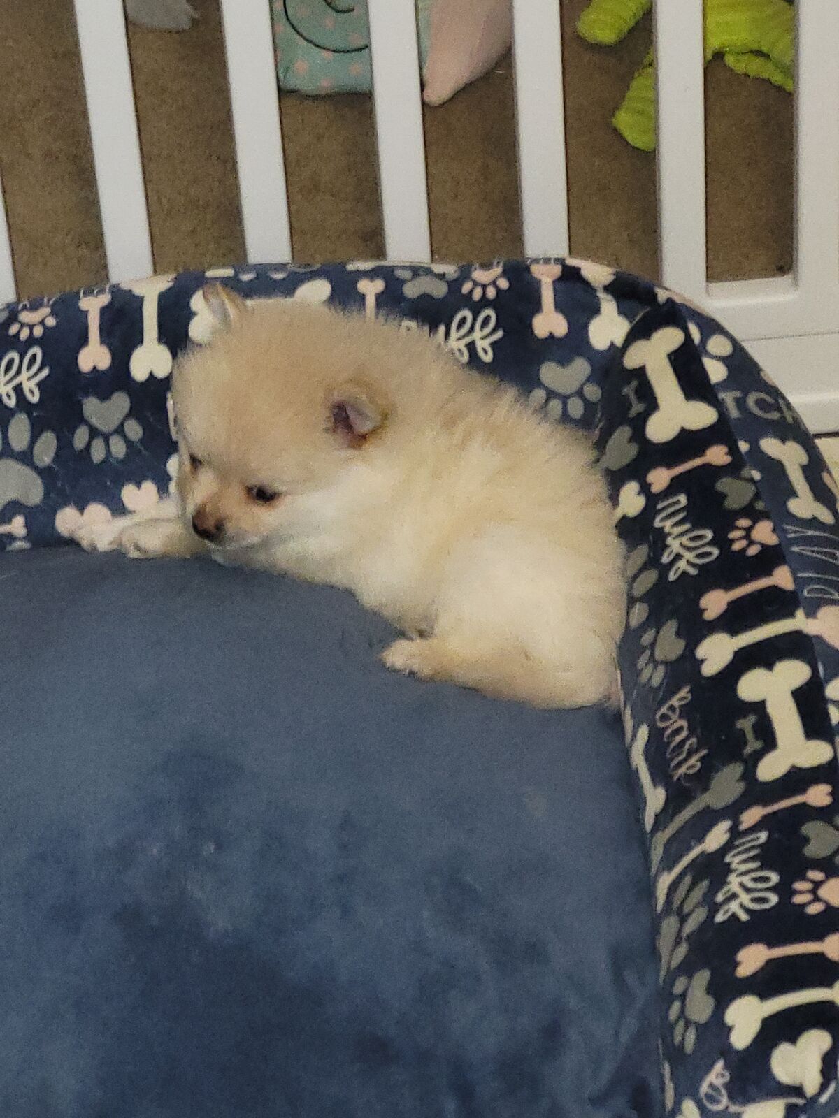 VenmoPure breed pomeranian puppies. Two boys and three girls. Born November 28th. Vet checked, vaccinated and dewormed. Raised in a loving home with both parents. They are happy, healthy, playful, energetic, and love to be cuddled. They have been socialized with adults and children, exposed common household noises such as vacuumes, TV, doorbells, alarms, music, washer and dryer, ect. They have been enclosure trained, do well on stairs and have started potty training on grass pad. $800 free local delivery or pick-up. I am not a breeder. This is the only litter. Father has been neutered.