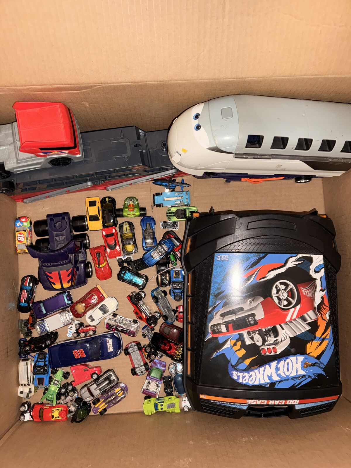 Hot wheel cars and tracks I haven't used these in years, some hot wheels I looked at were worth a few bucks. Mostly meant for a kid to have a bunch of cars. for the track there is a speed boost thing, should still work.