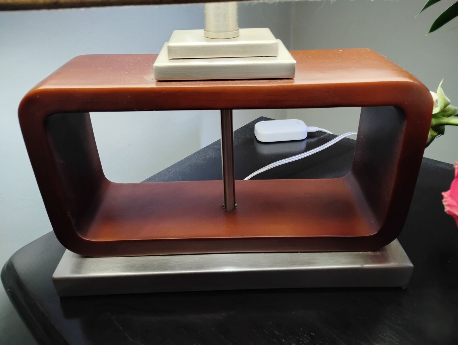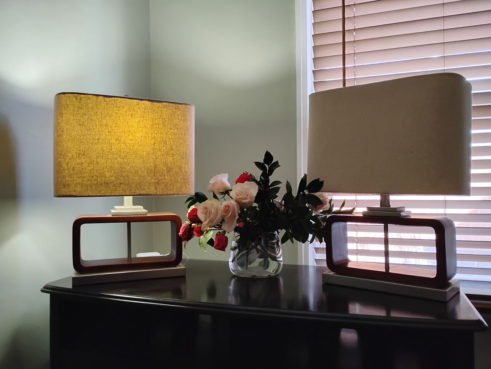 Two beautiful wood and metal lamps. Measuring 15' wide 20' high. Would make a great addition to any room in the house.