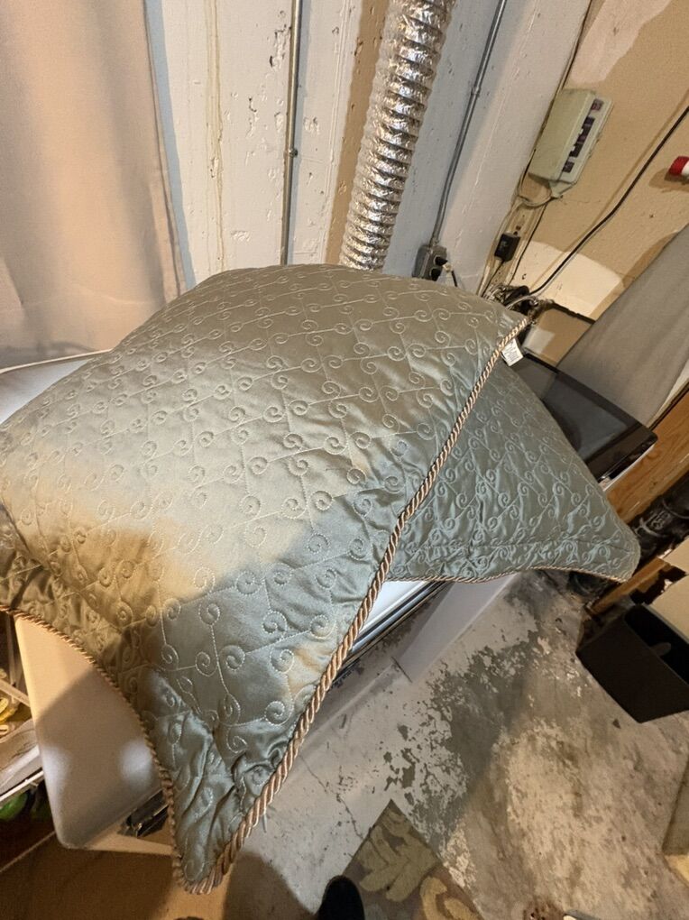 King size comforter set with 4 giant pillows. Comes with 2 square pillows and 2 rectangular pillows. Everything is two sided. It’s a beautiful pattern. No stains, rips or tears. Comes from a non smoking home.