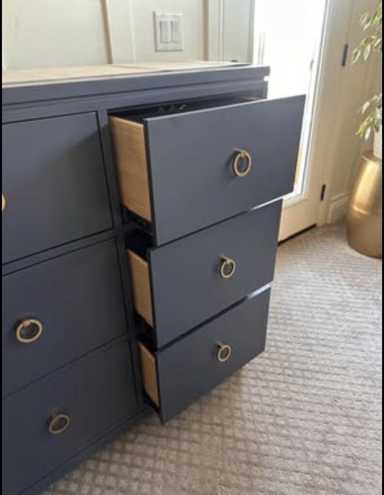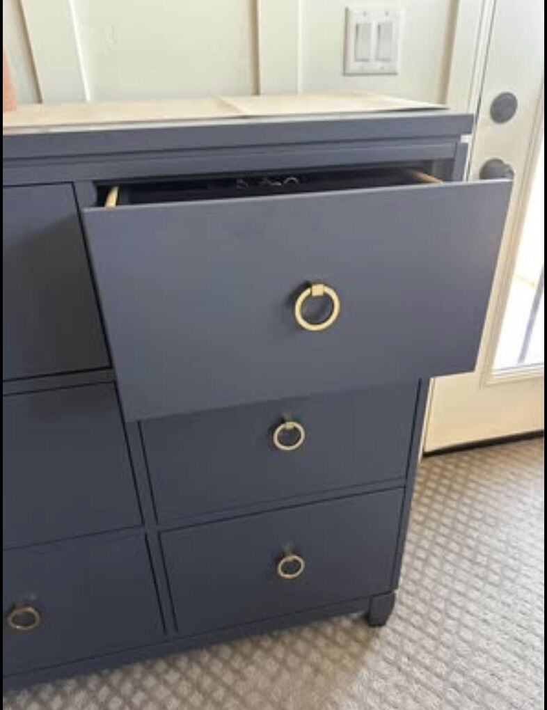 VenmoBeautiful new navy blue dresser! I purchased two and only needed one. Dresser is new in box, already assembled & a classy addition to any room! Purchased at RCWilley - was listed at $900, and purchased for $600 on clearance. (No longer available @ RCWilley, but listed here https://www.macys.com/shop/product/summerland-dresser?ID=13899765)