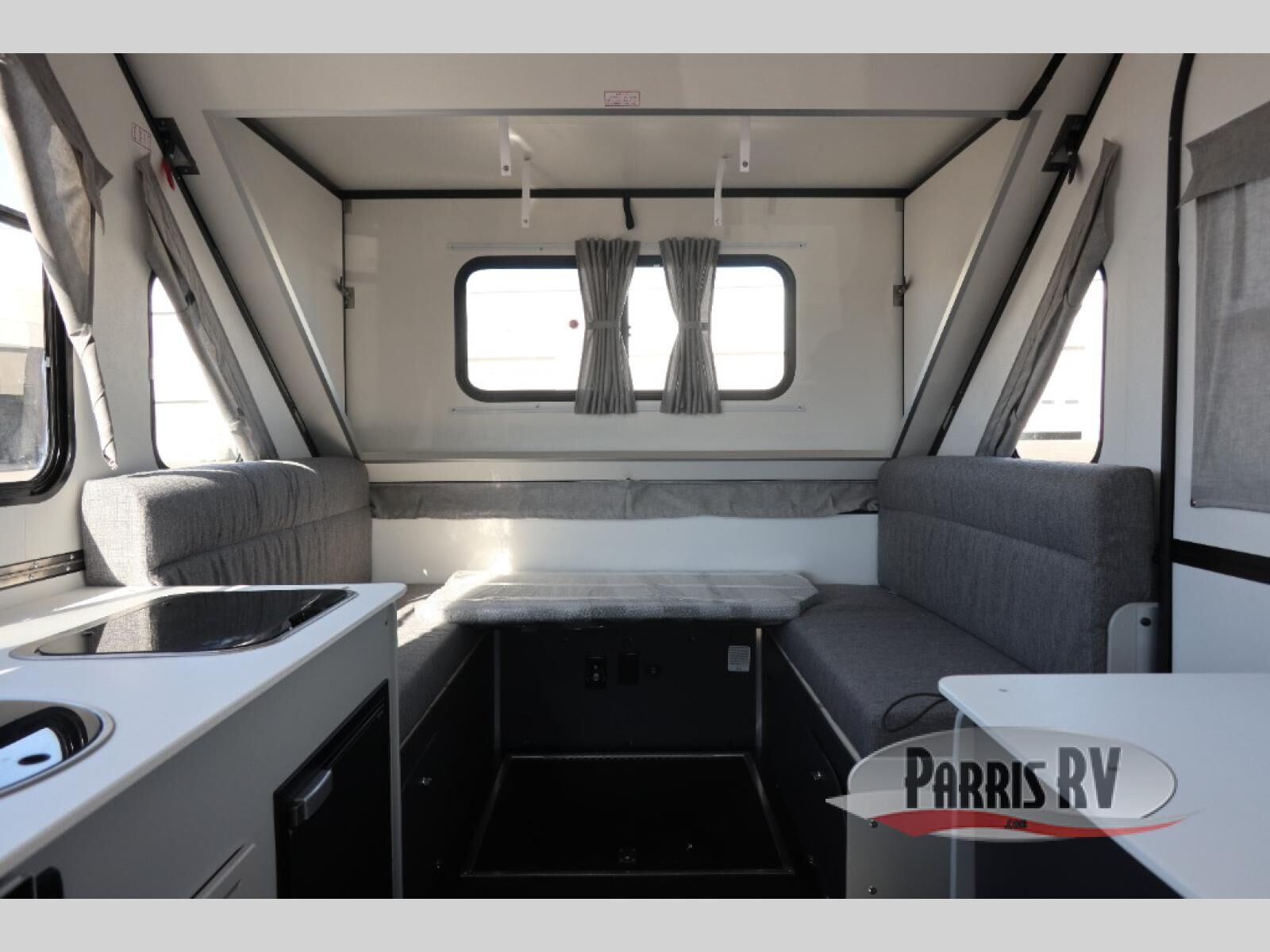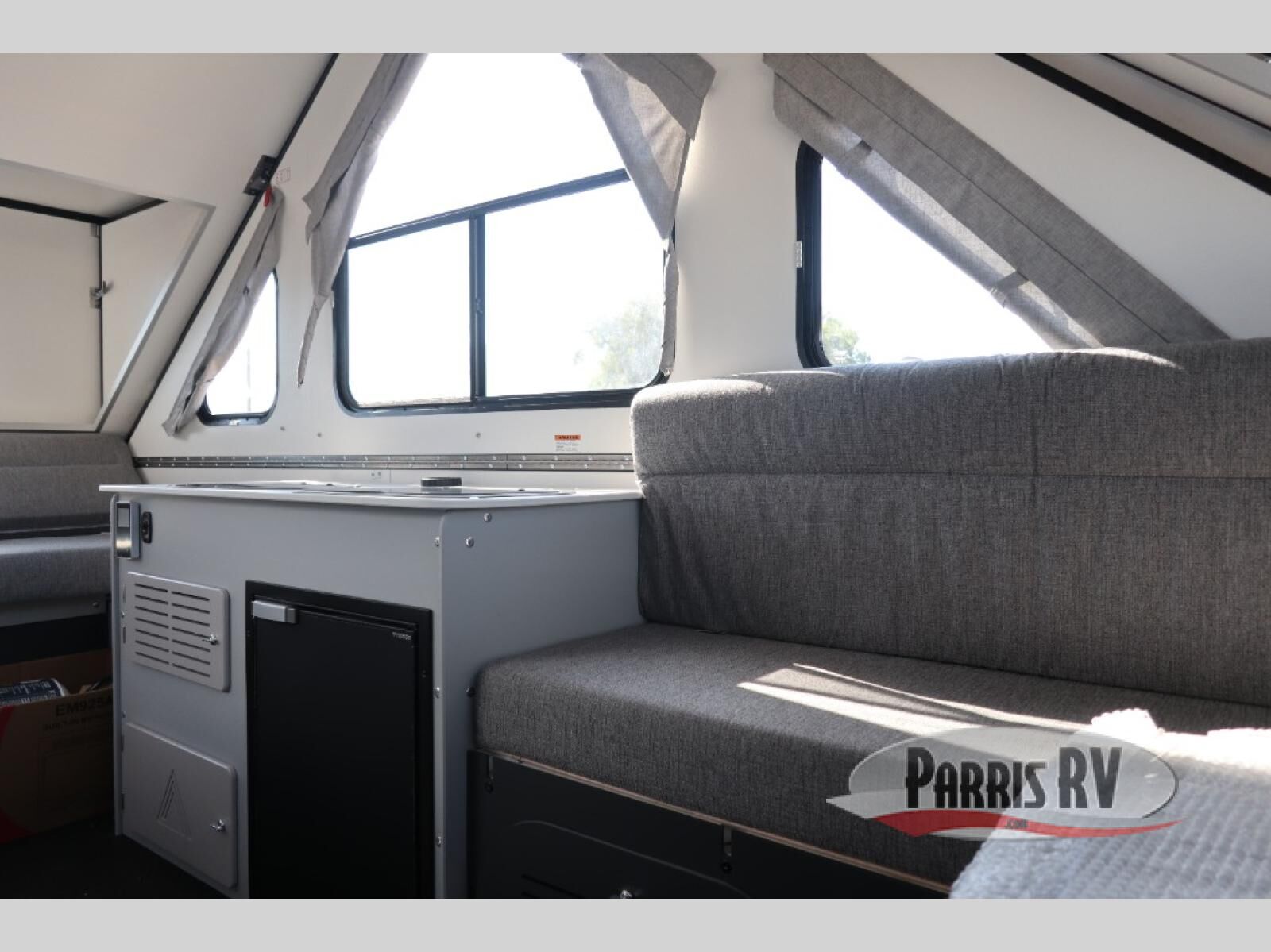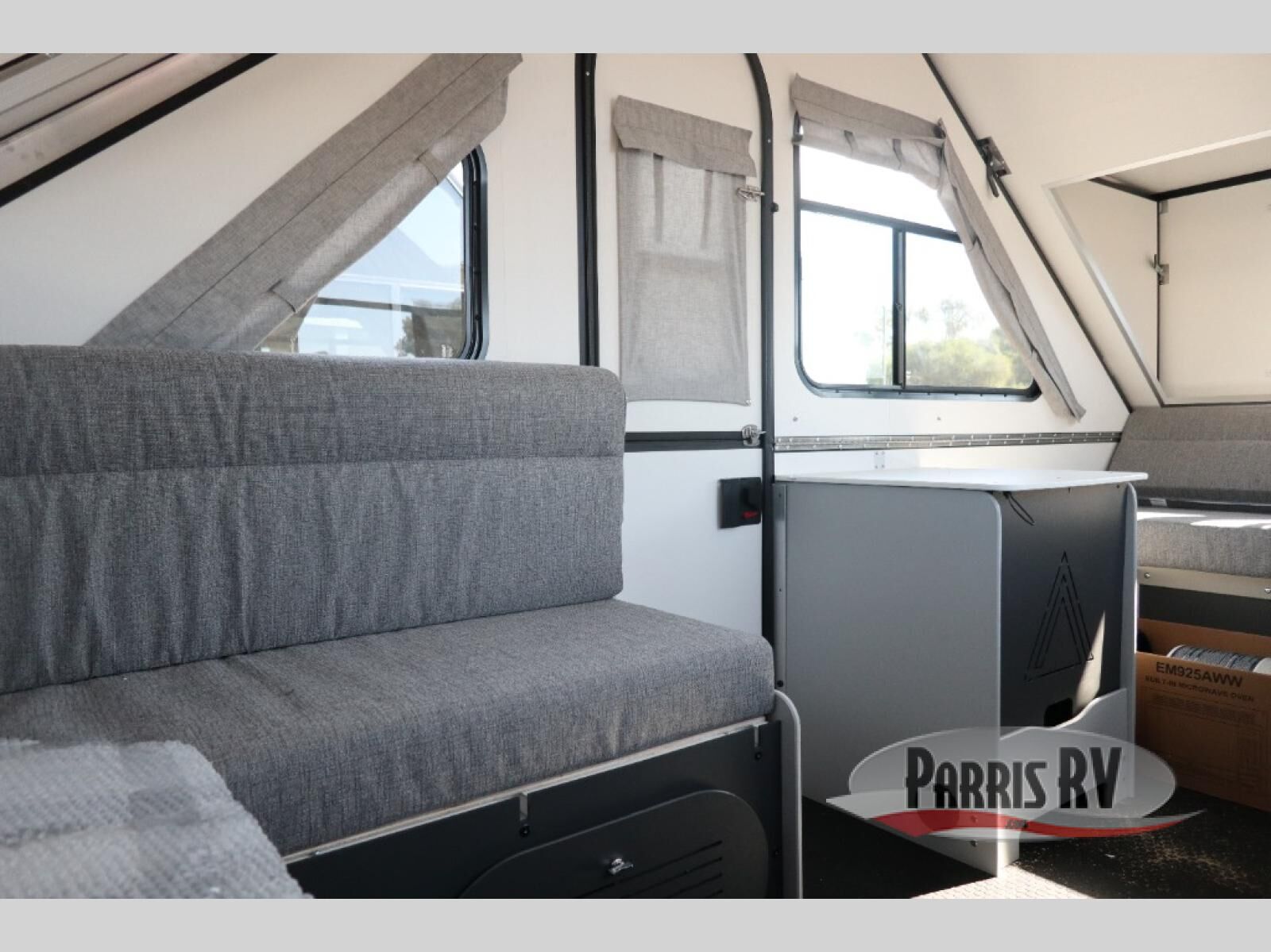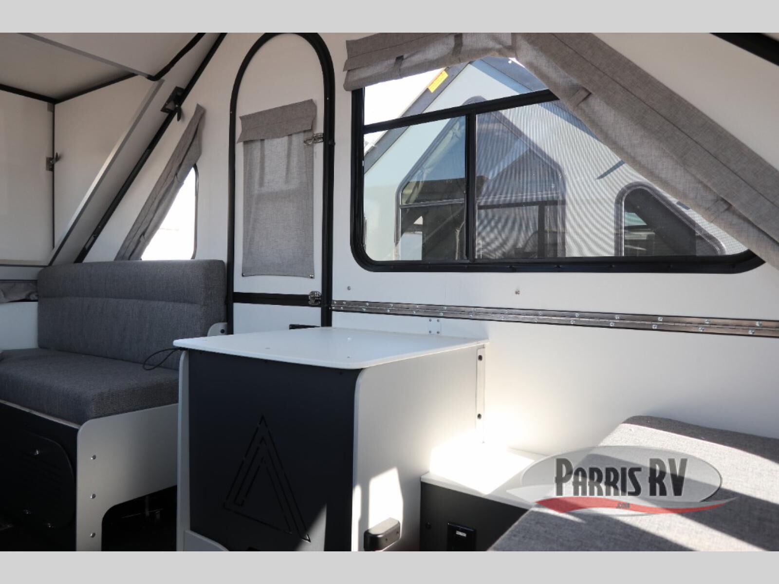 The Evolution A-frame camper by Aliner is coming to you with residential features and solid construction materials. You'll love the slate gray exterior, and the Azdel composite panels included help prolong the life of your camper. There are 15" off-road tires with graphics package, LED running lights, exterior baggage doors, plus many more exterior conveniences. The Evolution A-Frame camper comes with commercial grade, raised coin polyvinyl flooring, SIMONA BOATBOARD interior cabinets and furniture, and three indoor electrical outlets to name a few interior comforts.
