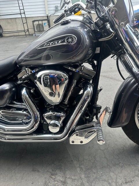 STEADMANS 1-800-789-1234 916 N Main street, Tooele UT HARD TO FIND ROAD STAR 1700 Silver with Flames Awesome Cruiser with only 21,127 miles. Options include : Quick release windshield with storage bag, Vance & Hines High Performance Exhaust, Mustung Seat with Passenger & Rider backrest, Cargo rack, Rider Forward controls, chrome Grips, foot pegs and swing arm covers. Brand New tires front & rear. PRICED to SELL and READY TO RIDE. Displacement: 1670 cc (102 cu. in.) Engine Type: 102 cu. in. (1670 cc) air-cooled 48 deg. V-twin; pushrod OHV, 4 valves/cylinder Bore and Stroke: 97 x 113 mm Cooling: Air Cooled Compression Ratio: 8.3:1 Fuel System: Fuel injection Ignition: TCI Front Suspension: 43 mm fork; 5.5 in. travel Rear Suspension: Single shock; 4.3 in. travel Front Brakes: Dual hydraulic disc, 298 mm Rear Brakes: Hydraulic disc, 320 mm Front Tire: 130/90-16 Rear Tire: 150/80-16 Wheelbase: 66.5 in. Seat Height: 27.9 in. Fuel Capacity: 5.3 gal. Dry Weight: 694 lbs Transmission: 5-speed, wide-ratio; multiplate wet clutch Final Drive: Belt Speedometer: Standard Odometer: Standard Colors: Charcoal Silver w/ Flames (Dark Metallic Bluish Gray)