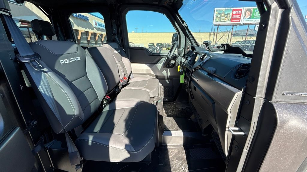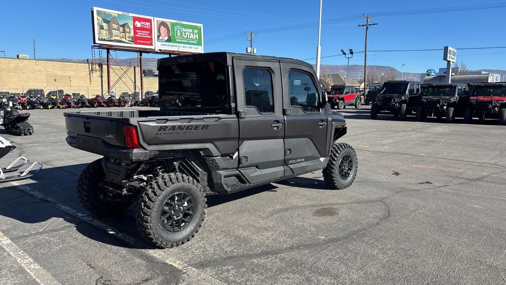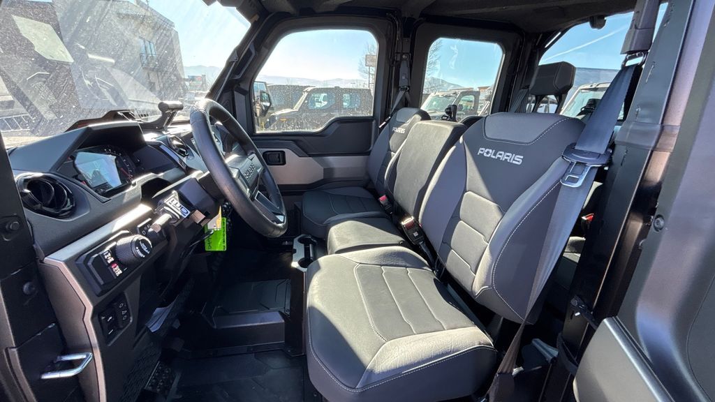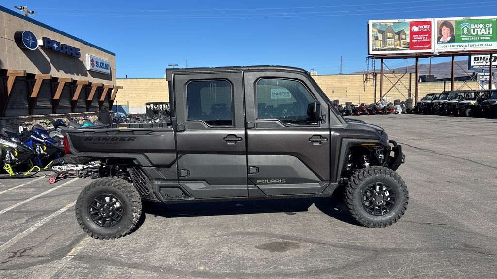 2026 Polaris® Ranger Crew XD 1500 NorthStar Ultimate NEW MOUNTAINEER EDITION Mountaineer Edition delivers 20% more low-end torque than standard XD 1500 for smooth uphill climbs and heavy-duty performance at high elevation. Features may include: 110-hp ProStar 1500cc engine & STEELDRIVE transmission 3,500-lb. towing capacity & 1,500-lb. box capacity Factory-installed heating & air conditioning (HVAC) system Electronic cargo box lift Pro Series 6,000-lb. winch with synthetic rope, Auto Stop, rapid rope recovery and wireless remote 30" Kenda Cross Trail tires and 15" wheels 3.07 rear drive gear ratio Lock & Ride MAX Accessory Integration Climb Confidently Designed with a lower gear ratio that delivers more low-end torque and limits top speed for smooth uphill climbs and steady handling in rocky, high-altitude terrain where every move counts. Optimized for High-Altitude Capability Built for confidence in steep, rugged terrain—delivering the torque and control needed for hauling heavy loads at elevation. Styled For The Summit Make your mark with signature badging and tinted windows on the RANGER XD 1500 Mountaineer—designed to keep the cab more comfortable when you're riding at elevation. UNMATCHED COMFORT Extreme duty doesn’t mean you have to sacrifice on comfort. RANGER XD 1500 is designed to maximize comfort and convenience with the most spacious and premium cab we’ve ever built—and rides like a dream. Our Most Spacious Cab We’ve increased interior space with 2” more leg room than our other full-size UTVs, plus easier entry and exit for tasks like working fence lines. Adjustable seating and a telescopic steering wheel let’s you find the perfect fit for your height and riding preferences. Premium Seating Contoured seating has added bolstering for more comfort. A new center flip-down seat transforms into an arm rest with added cupholders for more convenience. Legendary Smooth Ride An industry-leading 12” suspension travel, the ultra smooth engagement and quiet operation of the STEELDRIVE transmission, and chassis improvements deliver the smoothest ride of any RANGER we’ve ever built. A longer wheelbase delivers better stability in rough terrain for confident handling.