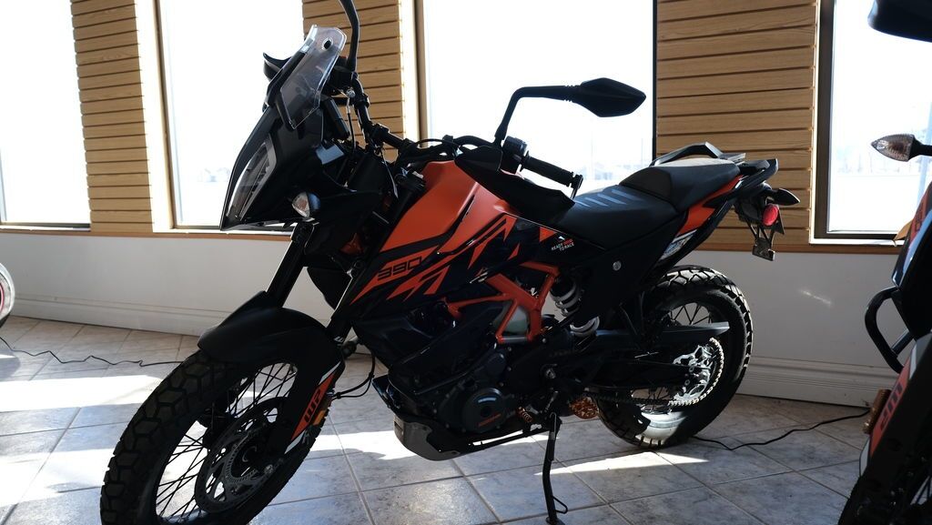 STOCK NUMBER: 6950 MILEAGE: 1244 2023 KTM 390 AdventureTGone are the days when going from A to B. The 2023 KTM 390 ADVENTURE rewrites the rulebook on what the daily commute needs to be. Merging all-road versatility and proven reliability with real-world performance, not to mention adventure-ready tubeless spoked wheels, a proven 373 cc powerplant, and a class-leading chassis, the KTM 390 ADVENTURE not only seeks out new adventures - it leaves no path unexplored.Features may include:ON-ROAD CONFIDENCEEngineThe KTM 390 ADVENTURE might seem small in stature, but twist the throttle and you'll awaken 44 eager horses ready to gallop toward the horizon. Merge that with a robust 6-speed sequential gearbox, QUICKSHIFTER +, and carefully tuned gear ratios, and the KTM 390 ADVENTURE quickly charges along with a smooth, uninhibited power spread for any terrain. Oh, and for complete adventure beginners - the KTM 390 ADVENTURE meets all A2 rider license requirements.HIT THE HARD TRACKWheelsThe KTM 390 ADVENTURE boasts heavy-duty tubeless spoked wheels at each end, making it extremely ready to tackle the toughest of dirt trails. No more worries about cracked or chipped rims, these spoked setups perfectly compliment the offroad-orientated tires to provide unmatched confidence when charging off into the wilderness.SUPERIOR CONTROLBodyworkThe KTM 390 ADVENTURE features distinctive KTM-style bodywork and graphics, providing excellent ergonomics and an aggressive look inspired by KTM's vast Rally racing heritage. This can be seen in everything from the headlight mask to the low front fender. The tank spoilers and rear side panels are slightly wider than the seat for optimized control when standing on the pegs, while the shape of the fuel tank is optimized to offer freedom of movement when tackling tricky technical terrain. A robust engine guard also makes its intentions known by protecting the engine and exhaust when venturing off the tarmac into the dirt. ALL-ROUND COMFORTFrameKTM 390 ADVENTURE features an ultra-lightweight, yet extremely stable trellis frame - just like the multi-championship winning KTM 450 RALLY. It provides the backbone to the KTM 390 ADVENTURE and is a major element that accounts for its nimble handling, and forgiving the balance of flex and stiffness. This, combined with a wheelbase of 1430 mm and a 63.5-degree steering head angle, means it was built to tackle the dirtiest of trails in the great outdoors.
