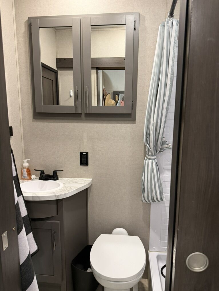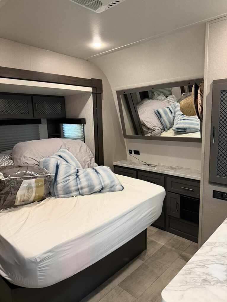 Upgrades on This Trailer • Dual air conditioners for superior cooling • Onboard generator for off-grid camping • 3,000-watt inverter for running outlets and appliances without hookups • Lithium battery upgrade for extended off-grid capability