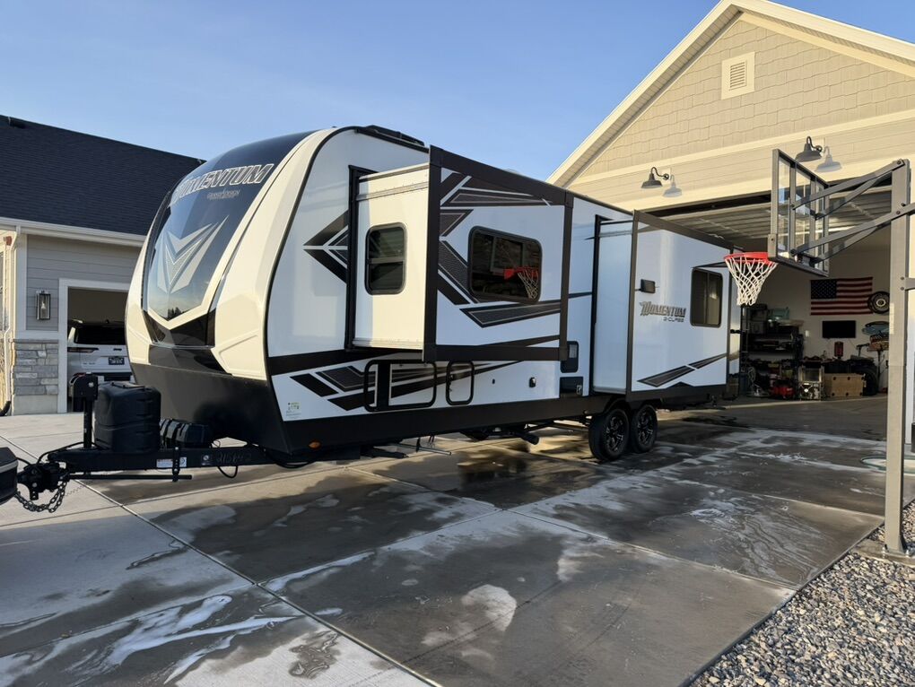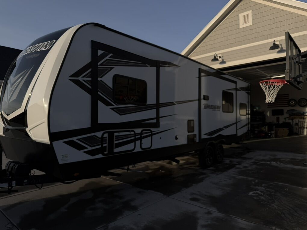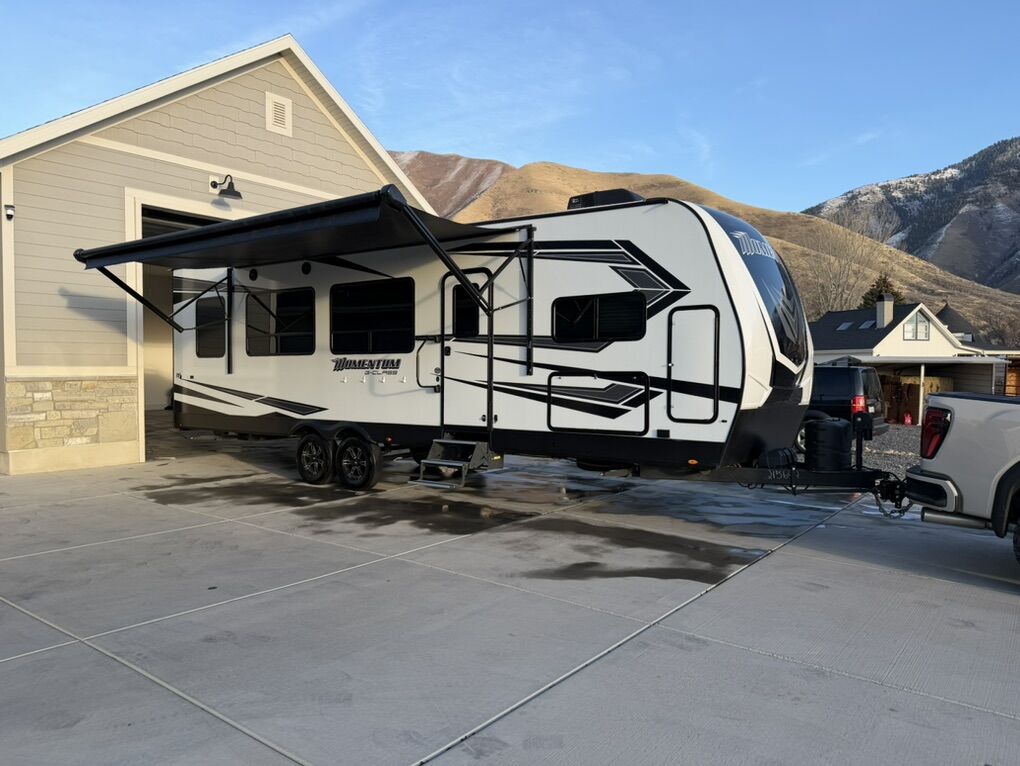 Excellent condition 2022 Grand Design Momentum 28G toy hauler, very well cared for and ready for camping, desert trips, or mountain adventures.