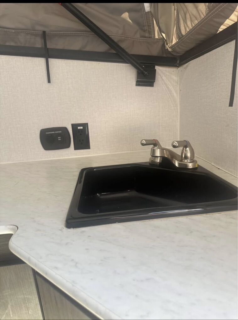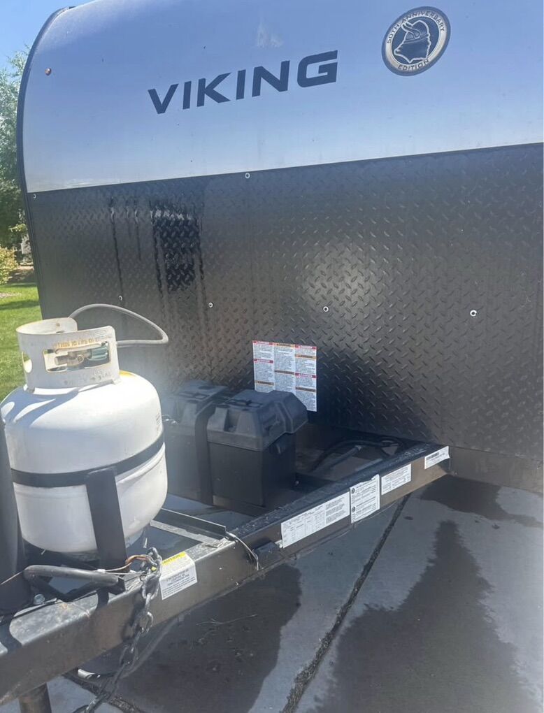 Light weight / off roading Viking pull trailer. Perfect for hunters or off roading destinations. Can sleep 3 people comfortably. Indoor / outdoor fridge, AC, Bluetooth speakers, Tv mount, outdoor grill and shower hook up. Great condition!