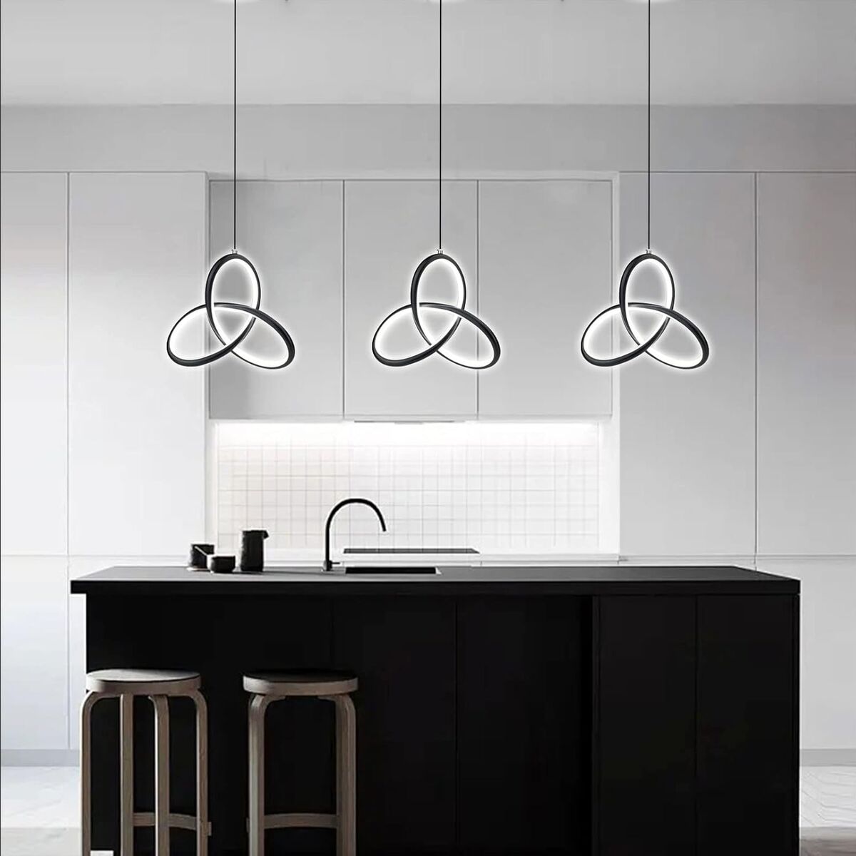 ApplePayCANEOE Black Modern Led Pendant Light, 5500K Cold White Kitchen Island Pendant Lights Fixtures, Adjustable Integrated Hanging Lamp for Living Room Bedroom Hanging Light, 1 Pack (Black)