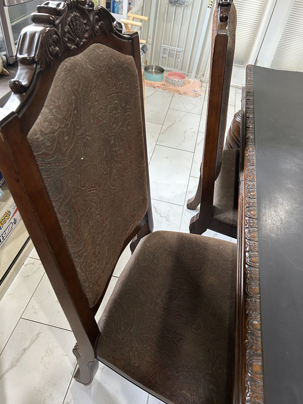 VenmoSturdy wooden table, 6 chairs, 2 chairs with arm rests, extension piece. As is.