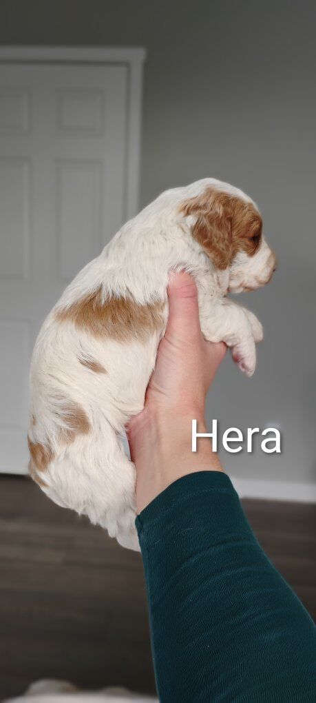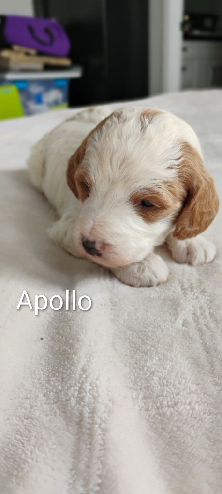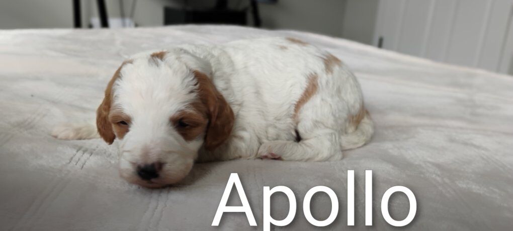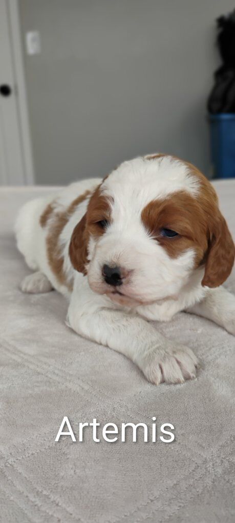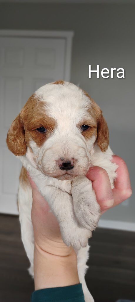 VenmoMeet your new furry family member! This litter of mini F1 Brittany Doodles is to die for! Mom is a registered brittany spaniel, and dad is a registered mini red poodle. Both are genetic tested. Mom is on site, and is the most loyal, sweetest dog you'll ever meet. Her pups have the best role model! We have 3 females (1 red, 2 white parti) and 4 males (3 red, 1 white parti) available. (Last 2 pics are of mom and dad, respectively) Estimated weight 20-30 lbs, low to no shed, wavy/curly fur. Born January 15, these fur babies will be ready to go by March 12. They will have their 6 week shots, dew claws removed, and vet cleared at 6 weeks. ENS and ESI training completed. Why choose a brittany doodle? They are loyal, sweet, mild mannered, easy to train eager to please and eager to learn. They do have a lot of energy, so they make the perfect adventure and/or hunting buddies that you can still cuddle with at the end of the day. These puppies are raised up around little kids, another dog, a cat, and chickens. Ask for pictures of dogs from previous litters if you want to see their typical look once fully grown. Contact me with inquiries or if you want to reserve one!