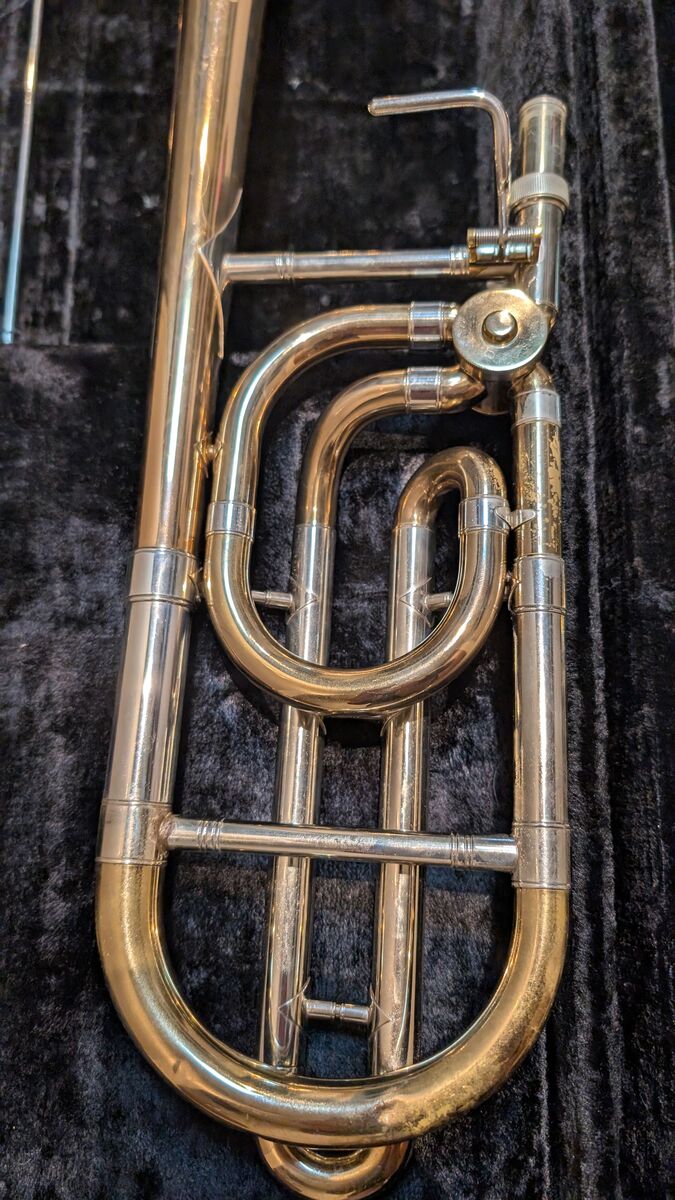 ZelleUsed Holton brand tenor trombone in good condition. No significant dents or damage, excellent sound and range.
