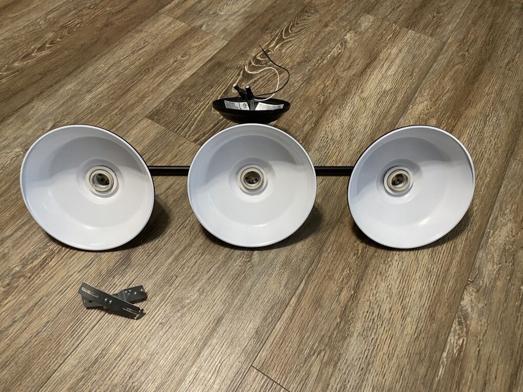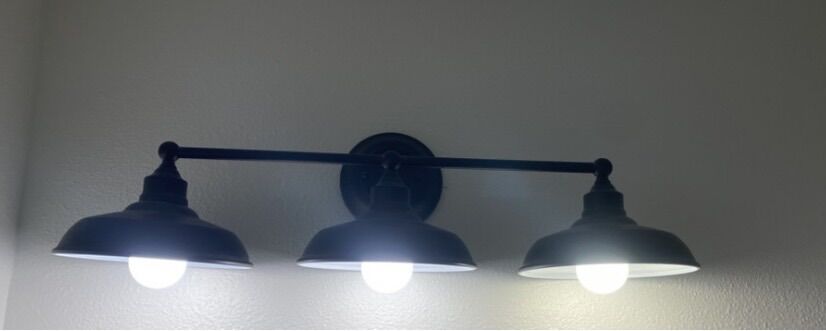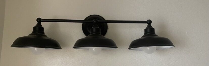 Triple Wall Sconce / Lights ~ Matte Black Bathroom Vanity Light with Metal Shades, in great condition. Smoke free home.