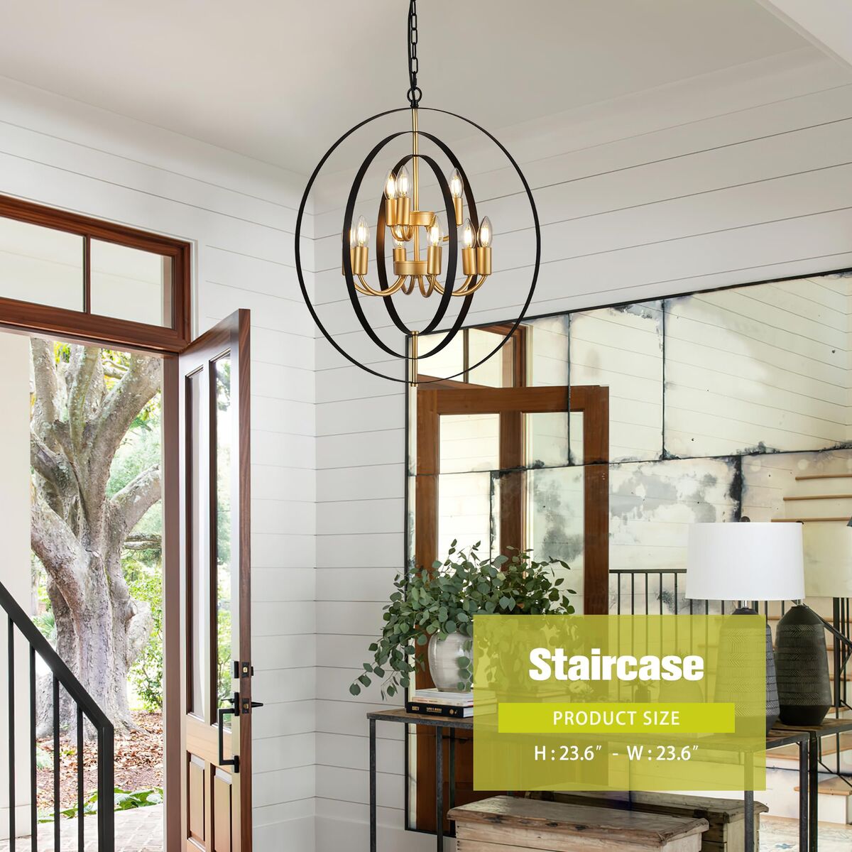 Unique DesignMetal globe chandelier with adjustable round shade, by rotating the circle, you will get round chandeliers of different shapes. The vintage and black gold design will add a fashionable look, while complementing your rooms decor. suitable for living room, dining room, hallway, bedroom, kitchen island, etc.