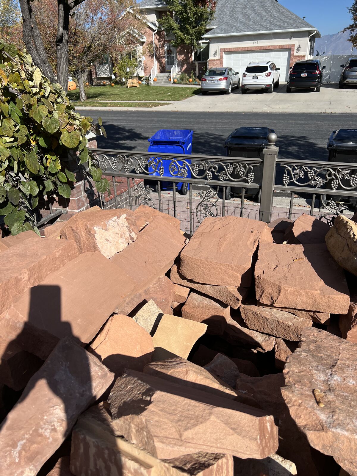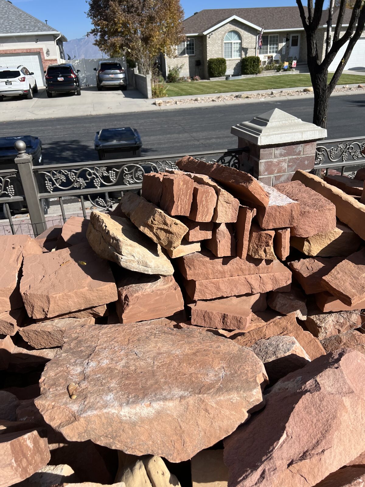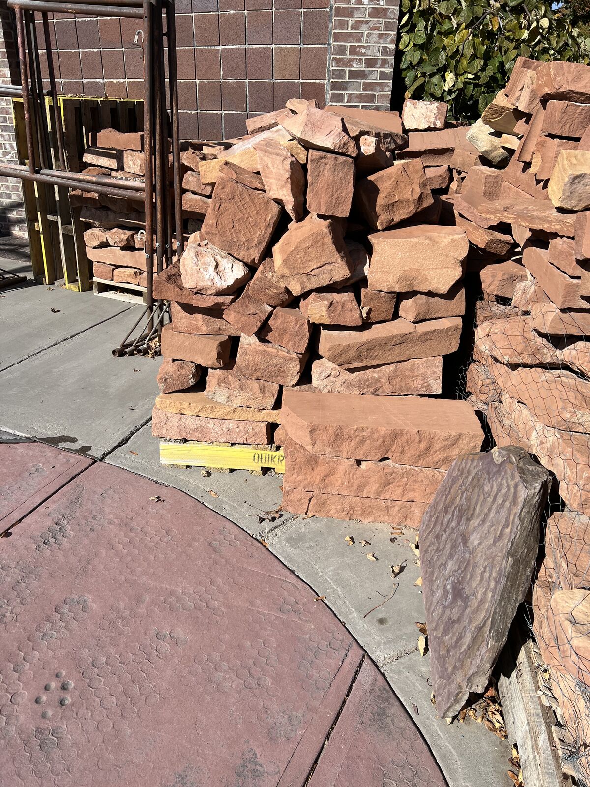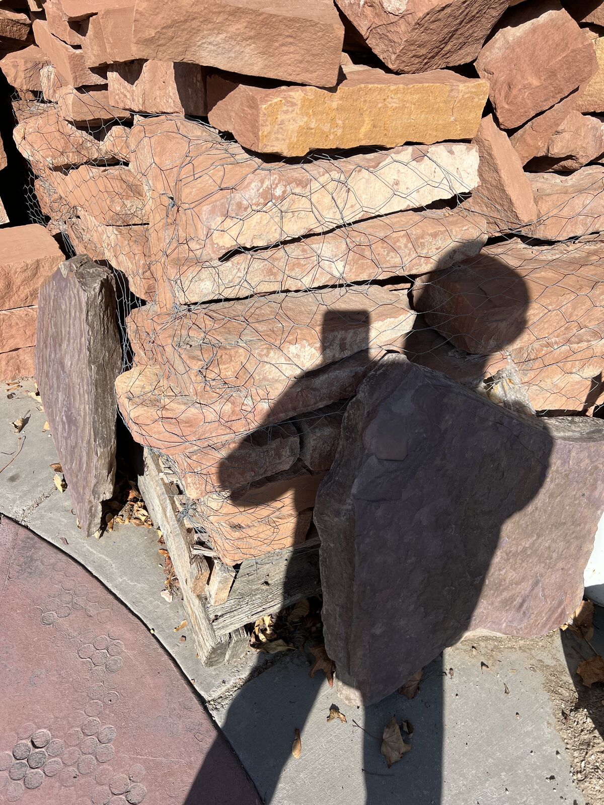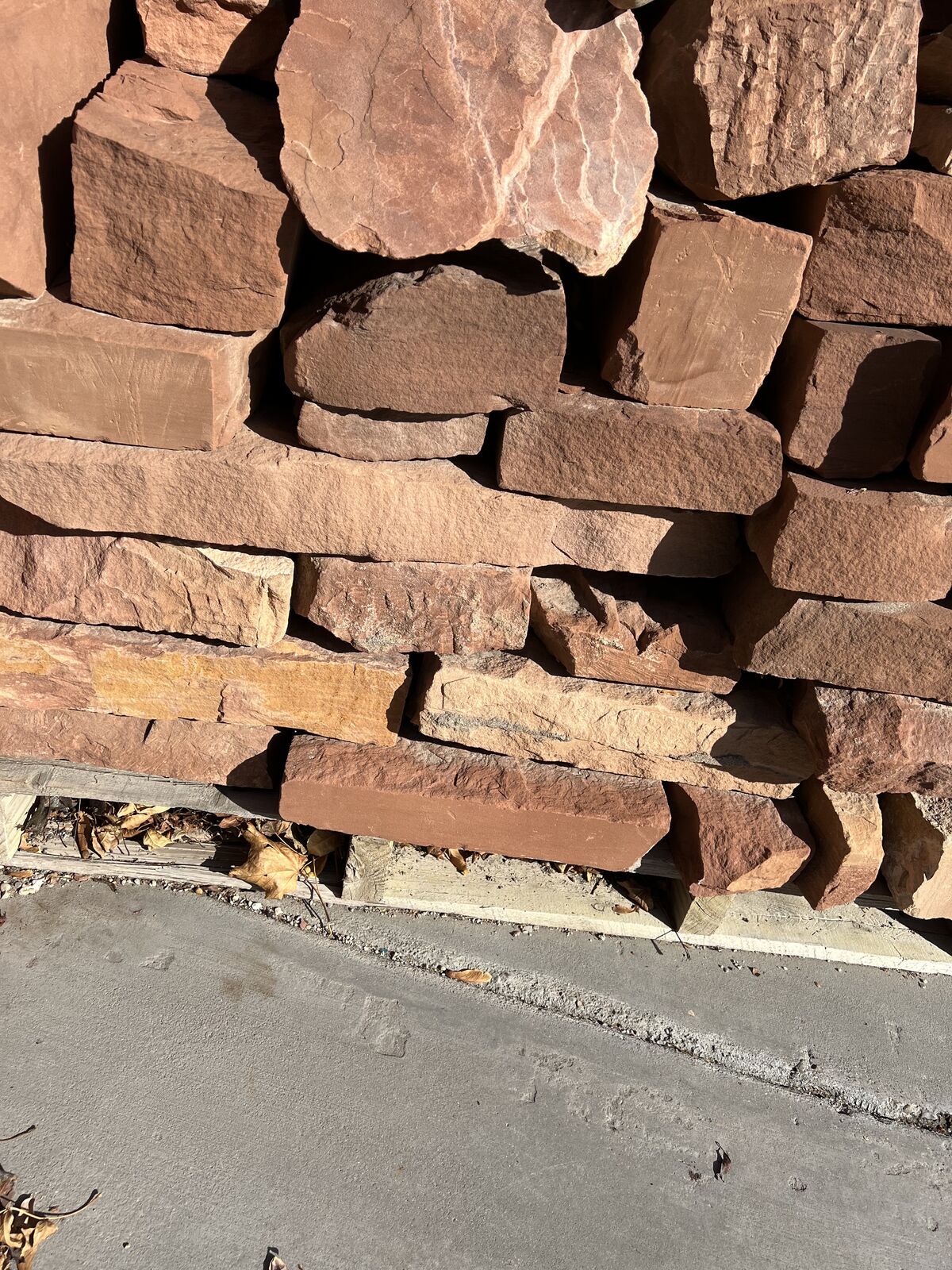 Red rock I have about 7 pallets of rock, bought for some masonry but changed direction. The rock is heavy about 3-3.5 tons per pallet. Great for landscaping, retaining wall, shed, fireplace, mailboxes, garden boxes, patio you name it normally priced at $800 per pallet Im selling all seven for $2200 for fast sell. Local pick up only you must haul away however it is stacked on concrete easy access.