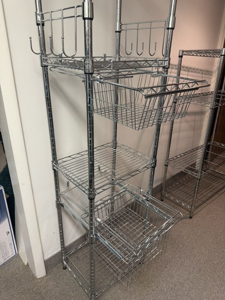 VenmoWire shelving unit with hooks and sliding drawers. Perfect for laundry room, kitchen, or garage.