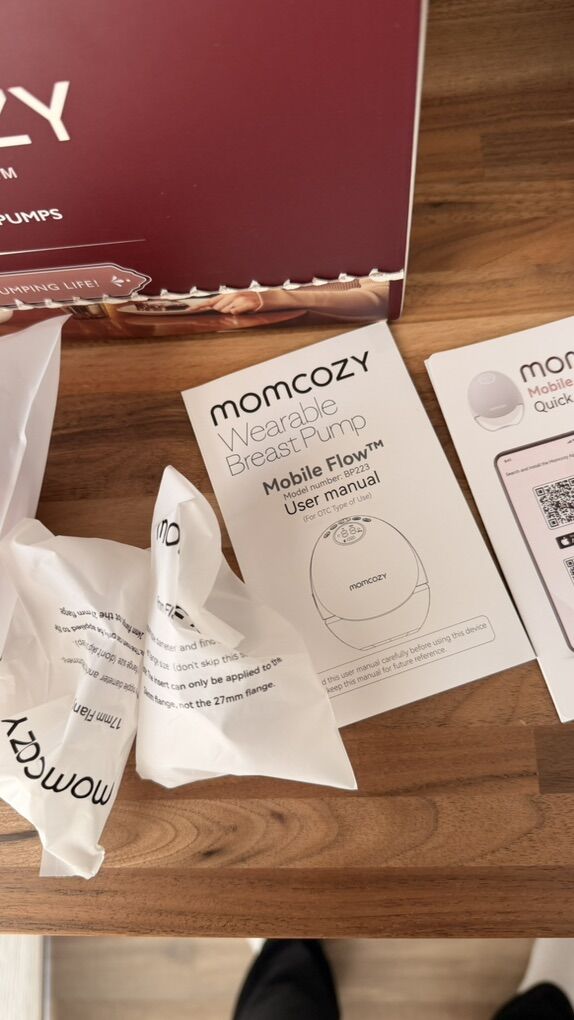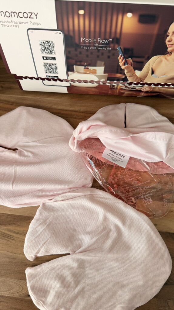 Momcozy wearable breast pump Momcozy bottle warmer Momcozy breast pump wipes Momcozy heatable and freezable packs Some milk storage bags