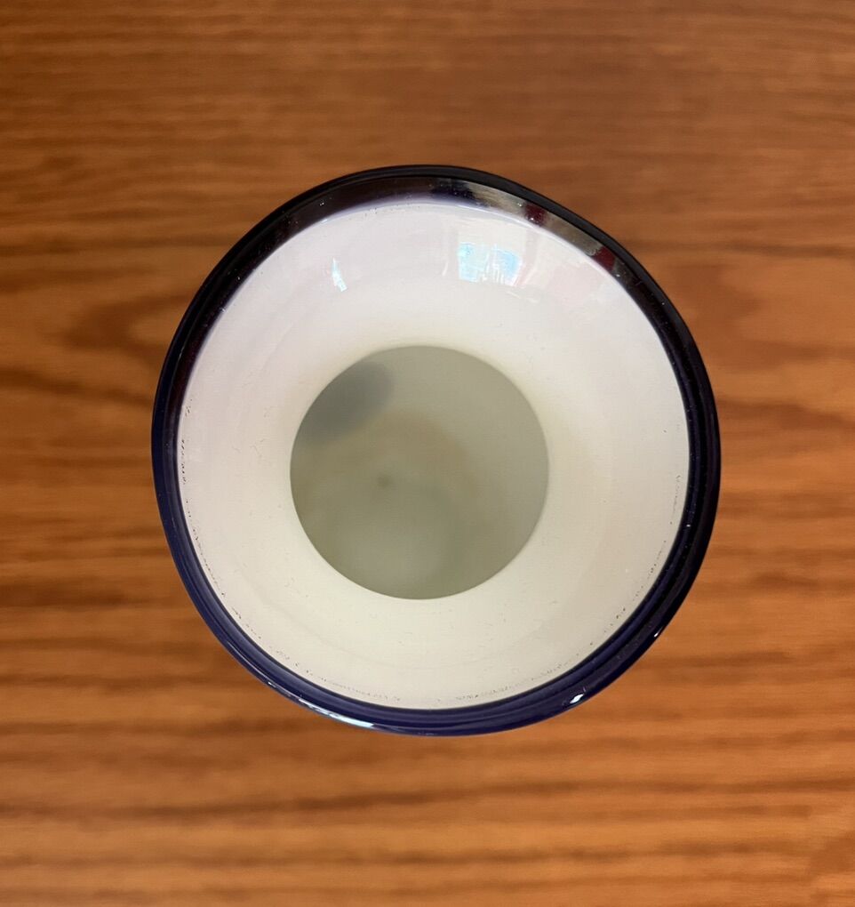 Venmo8” tall and the opening is 2,75” hand blown white-purple glass vase. No chops or damages. $15.