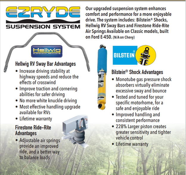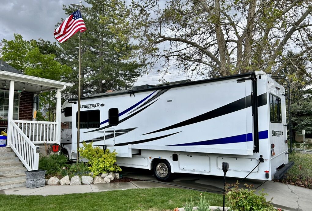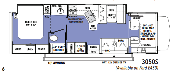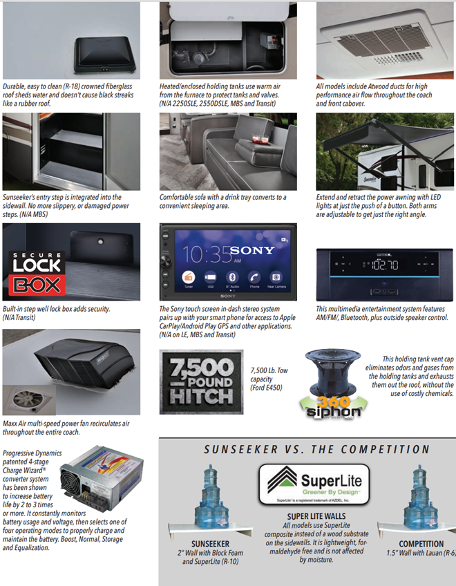 Save over RV show prices. Extended full warranty until June 2026. 2021 Forest River Sunseeker Classic 3050S Ford Ford E-450 Super Duty Low Milage 18,701 VIN: 1FDXE4FN9MDC01478 Style / Body: Commercial/Cutaway/Chassis 2DEngine: 7.3L V8 SMPI Gasoline Country of Assembly: United States Ford 7.3L V8 premium engine • 6-Speed Ford TorqShift® automatic transmission • 350 HP with 468 lb.-ft. of torque CLASSIC PREMIUM CAMPING PACKAGE Every Classic model includes this package. • EZ Ryde premium Suspension System (N/A Chevy) • Lane detection monitoring system • Undermount 1.3 cu. ft. convection microwave • 10.7 Cu. ft. 12V refrigerator • Heated remote exterior mirrors • Backup camera/side view cameras with monitor • In-dash CarPlay/Android Play stereo • In-house entertainment center with outside speakers • 12V bedroom TV • Slide room toppers • Ultra leather driver/passenger seating (N/A Chevy) • Fiberglass running boards • LP Quick connect LANE DETECTION WARNING SYSTEM • NEW Voyager®VBSD1 Blind Spot Detection System • Specifically engineered to enhance Class C motorhome safety • Visual and audible alerts warn drivers of obstacles not visible in the rear view mirror • Uses radar detecting sensors on the rear corners of the motorhome that communicate with LED beacons in the cab • Beacons remain lit until the blind spot is clear • Beacon flashes with an audible alert when turn signal is engaged. Lots of extras, like attachable side room.