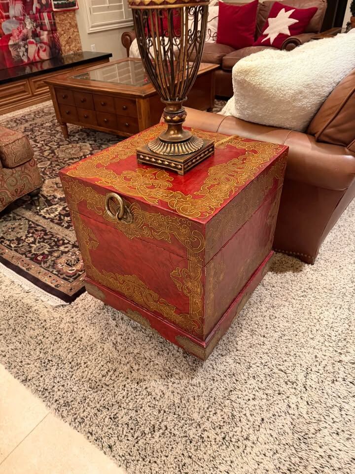 VenmoGorgeous accent table with built-in storage. Rich red finish with gold detailing makes this a standout piece that adds character to any room.