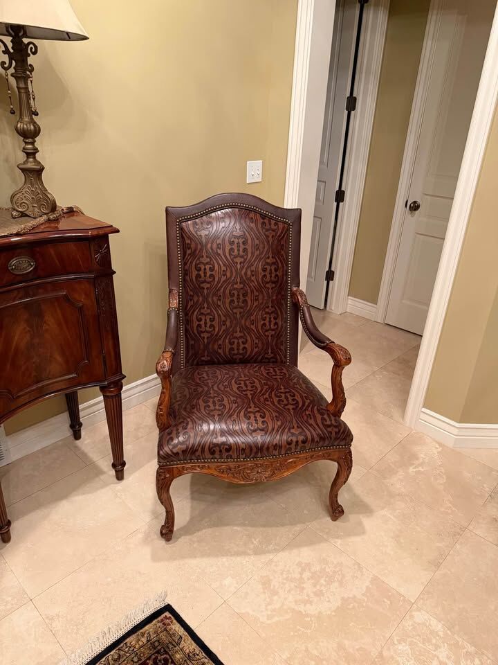 VenmoBeautiful matching accent chairs with carved wood frames and rich brown upholstery. These are very solid, elegant chairs — perfect for an office, sitting room, or formal living space.