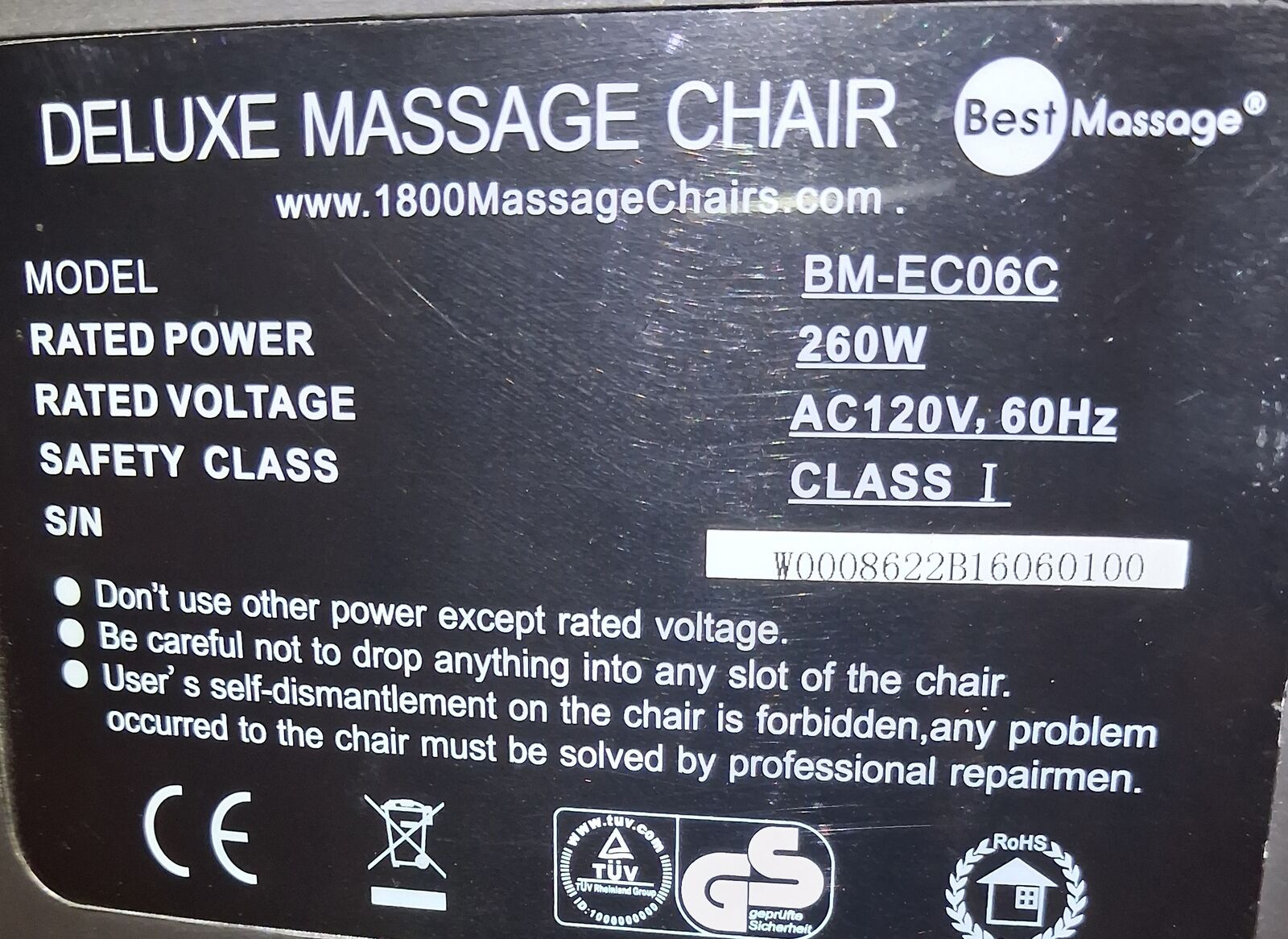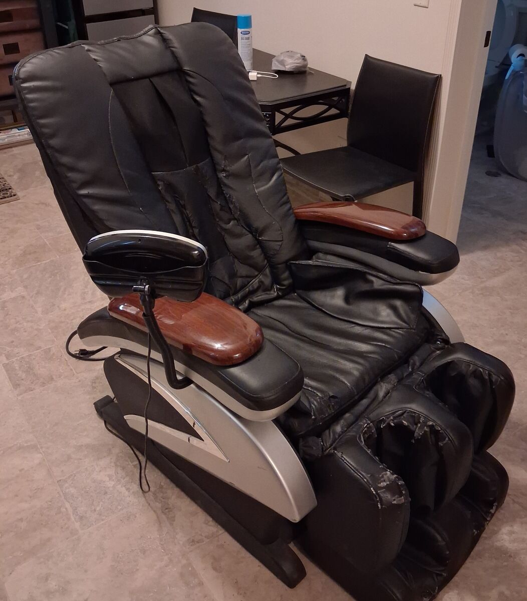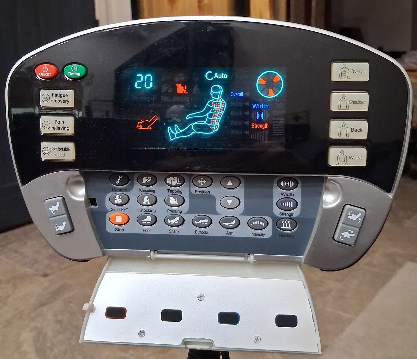 PayPalOne aching muscle relieving massage chair for sale. Works well. Has several preset programs. It is programmable to your likes as well. All functions work. It has a heat option, for a heated massage. A very thin fabric coating is coming off in several spots but the underlying fabric is in very good shape. Only $285.00