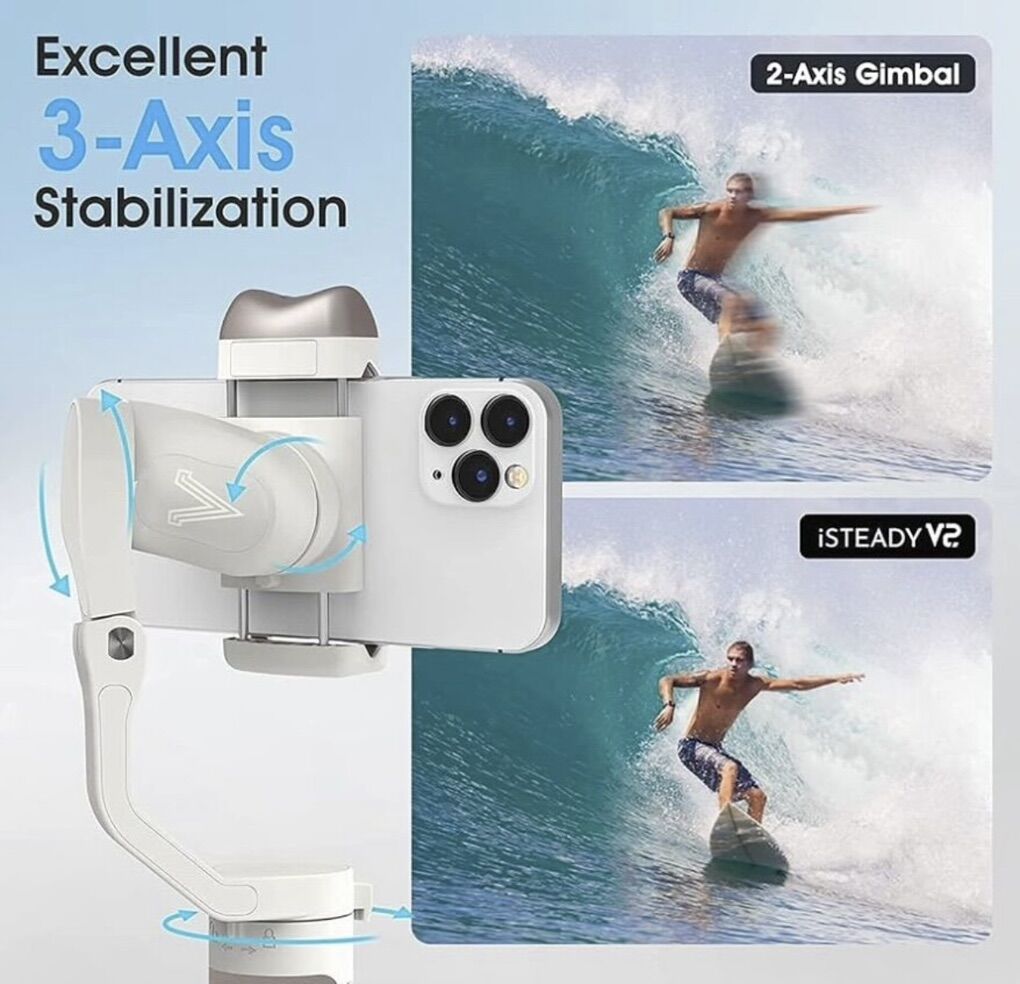 New in Box Hohem iSteady V2 AI Smartphone Gimbal Includes Original Packaging Manuals, carry case AI gesture control Older model, but never had if out of the box. Brand New!