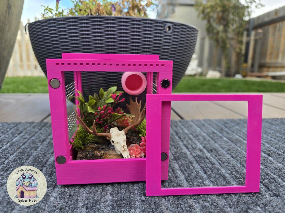 PayPalCustom made to order Little Jumpers Spider Hut enclosures! Size options of 3x3x3, 3x3x6, 4x4x6 and 5x5x7. I offer them either blank or decorated. Also open to custom orders! Perfect for jumping spiders or can tailor enclosures for arboreal tarantula slings/juveniles.