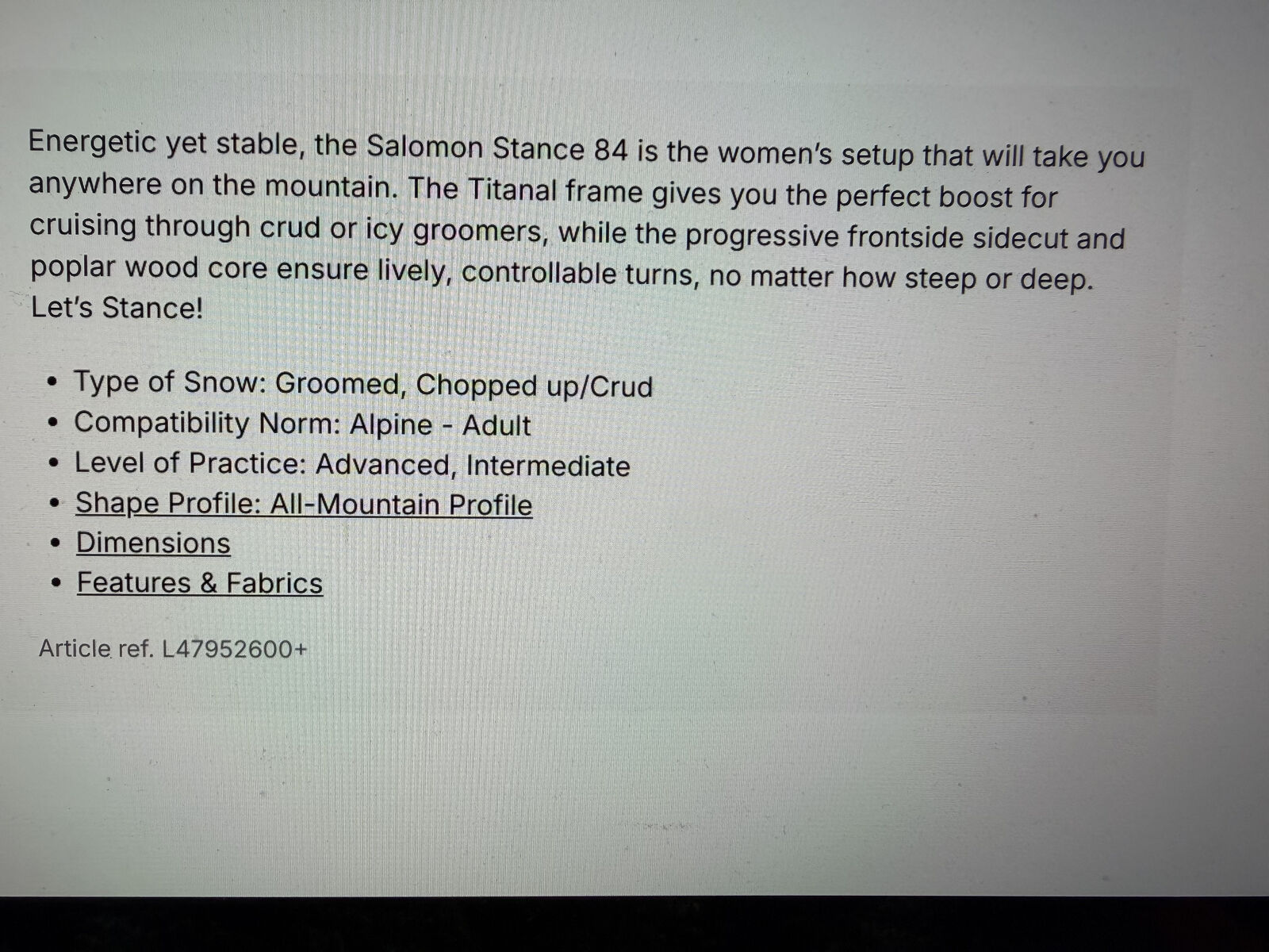 Only used 2 times! NEW CONDITION! Women's Salomon Stance 84 Skis with Salomon M11 GW (grip walk) bindings.