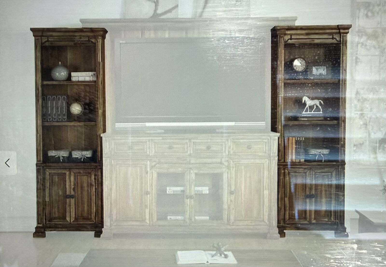 VenmoBarclay Rustic Brown TV stand and has a combination of drawers, closed door storage, and open storage. dovetailed drawers Felt lined top drawer Ball bearing drawer glides Dimensions 72W x 18D x 42H Barclay Rustic Brown Side Piers 30W x 14.5D x 84H Bought at RC Willey Perfect condition and nonsmoking TV NOT ENCODED
