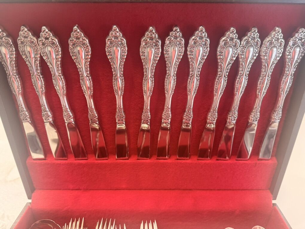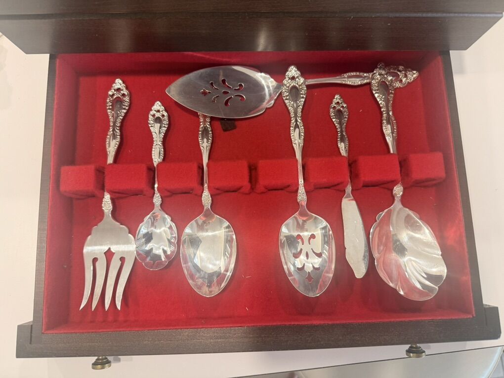 VenmoOneida 1881 Roger Silverware Set W/ Case 12 Piece Vintage Silver Plated Flatware. With serving pieces.