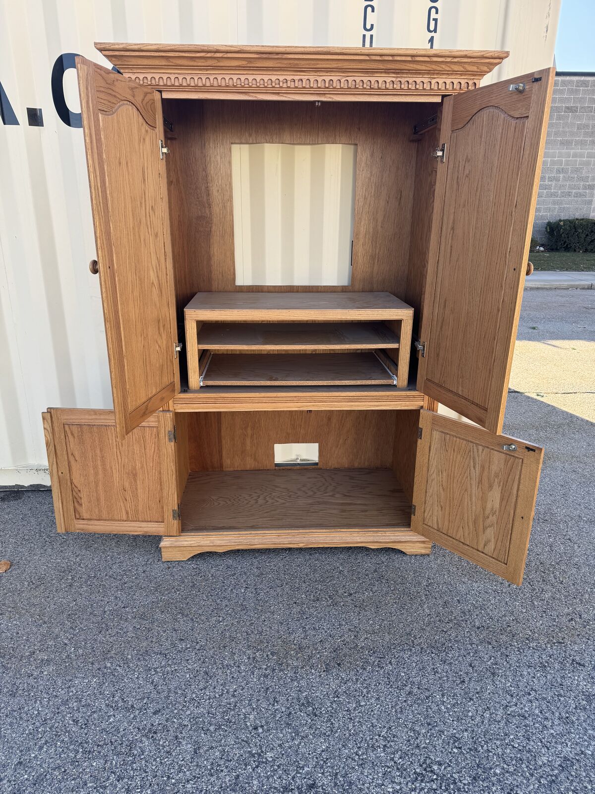 My work is renovating and wants to get rid of this armoire cabinet. Would make a good entertainment center or whatever you need it for. Free to anyone that can come pick it up. Its widest/biggest dimensions are 52" W by 27.5" D and 71.5" T. Please text me with any questions or to setup a pickup time.