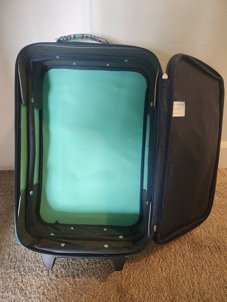 VenmoThis Circo rolling suitcase is a great little option for kids who want their own bag for sleepovers, trips to grandparents or short travel. It’s lightweight, easy for kids to pull on their own, and a really manageable size. It has a main zip compartment and a front zip pocket, with smooth-rolling wheels and working zippers. Everything functions as it should and it’s been gently used. There is one faint cosmetic mark on the back (shown in last photo) but it doesn’t affect use at all and I've priced it accordingly. Overall, it’s clean, sturdy and ready for another family to get good use out of it.