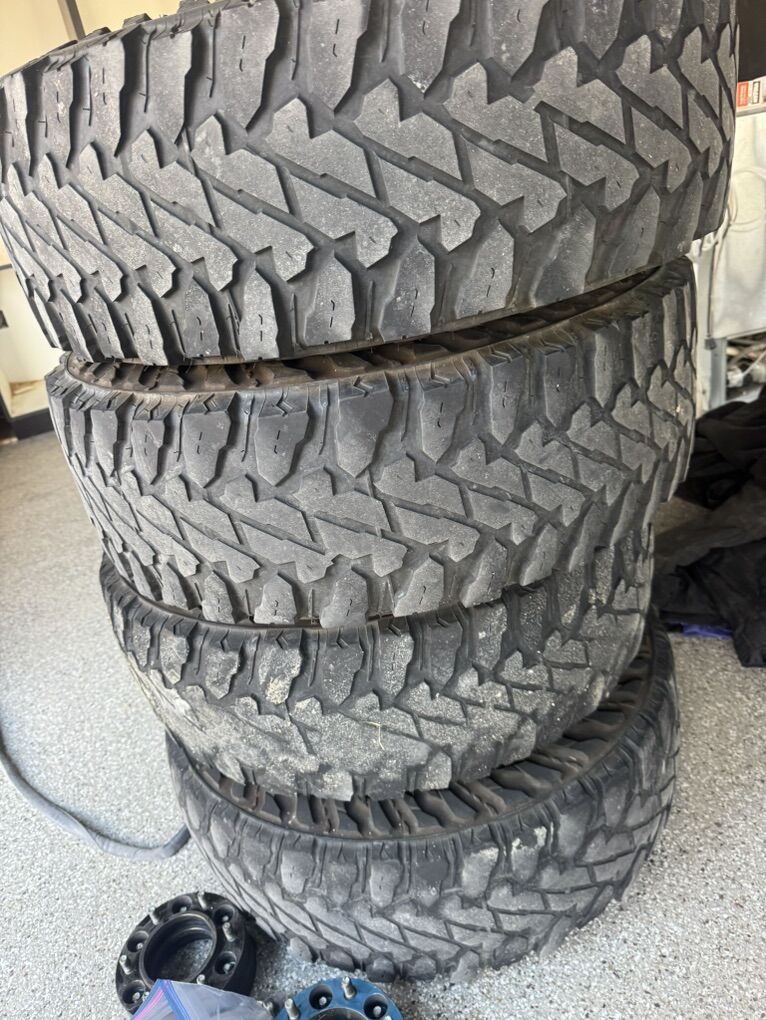Tires are pretty much worn out. But the rims looks new and come with lugs and wheel sensors. They also come with spacers to kick out rims slightly. Not needed and it’s only for visual effect.
