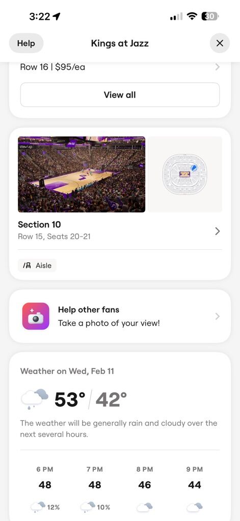 ApplePayJazz vs kings lower bowl tickets 40$ each obo . Tickets nearby are going for 55$