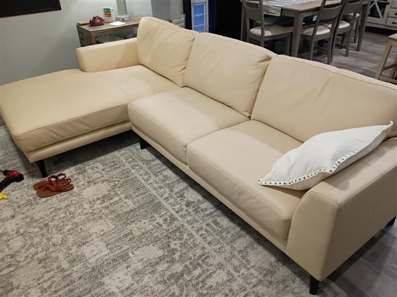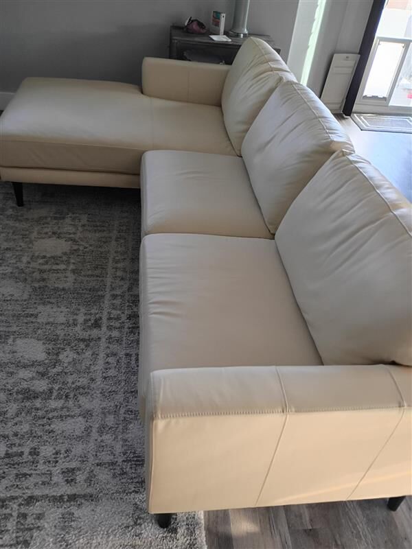 VenmoThis is a beige Italian grain leather sofa with lounger. Its in great shape no marks or tears.