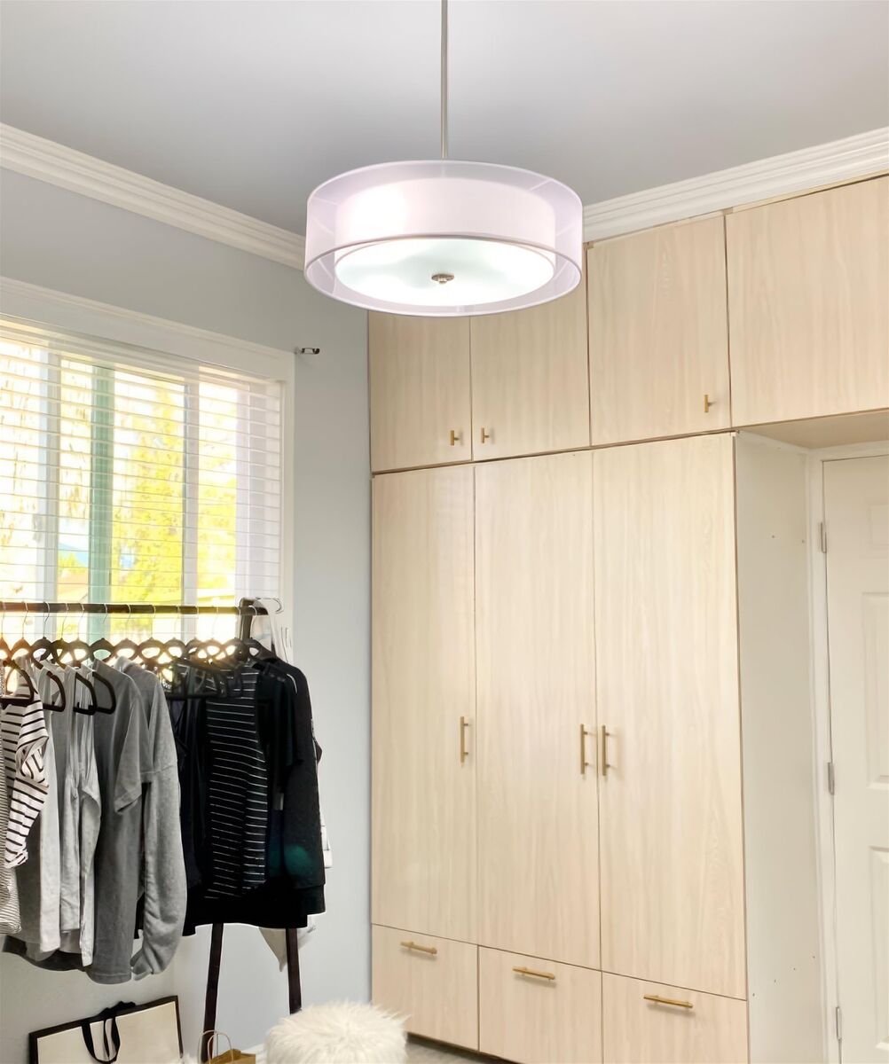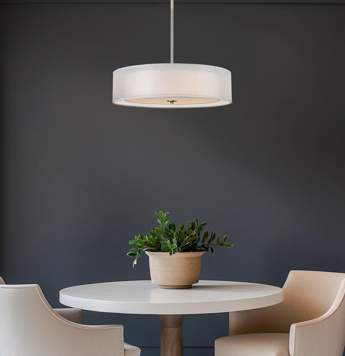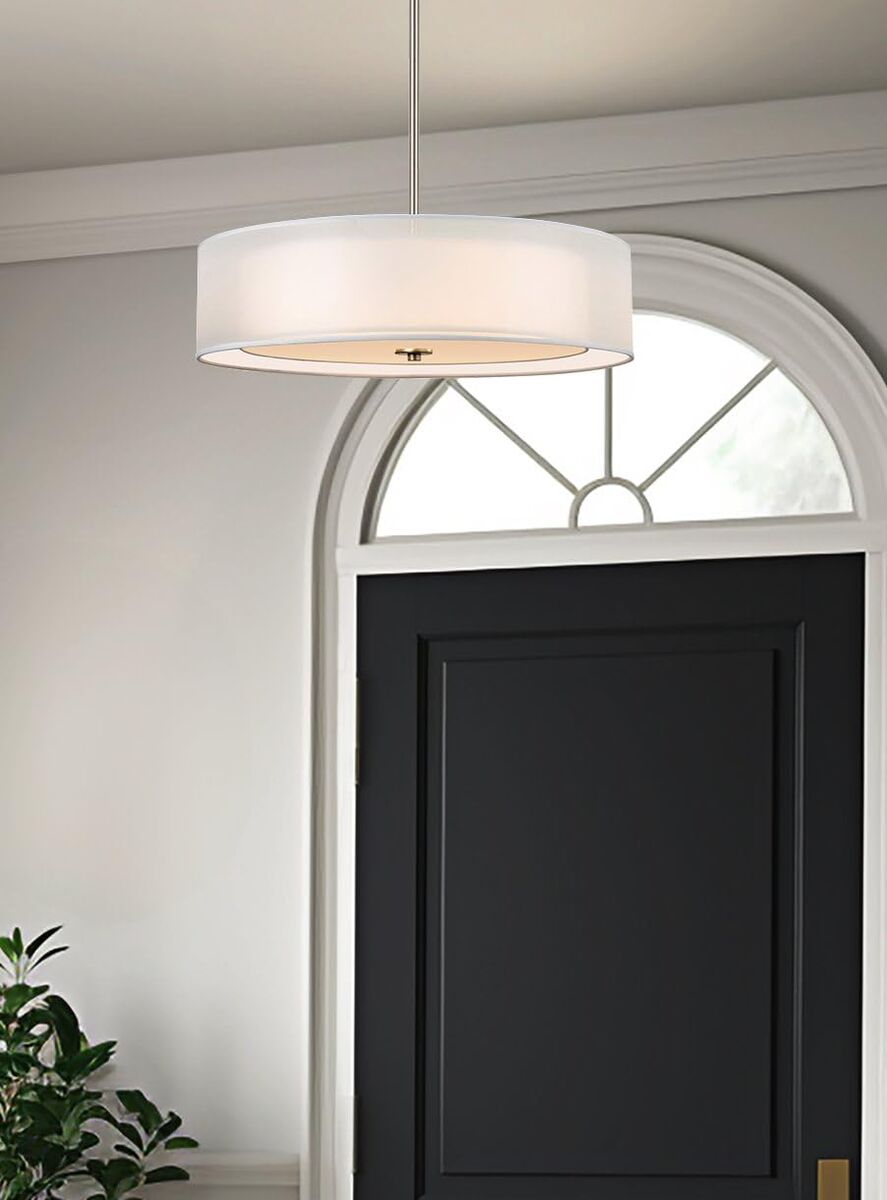 About this item - [CLASSIC MODERN DESIGN] This 3-light dual drum pendant light radiates elegance, showcasing a chic brushed nickel finish and high-quality, sheer out shade over an inner pure white fabric shade. The hanging light includes high-end accents and premium glass diffuser, casting a warm glow over its installed space, making it a prime choice amongst designers and builders