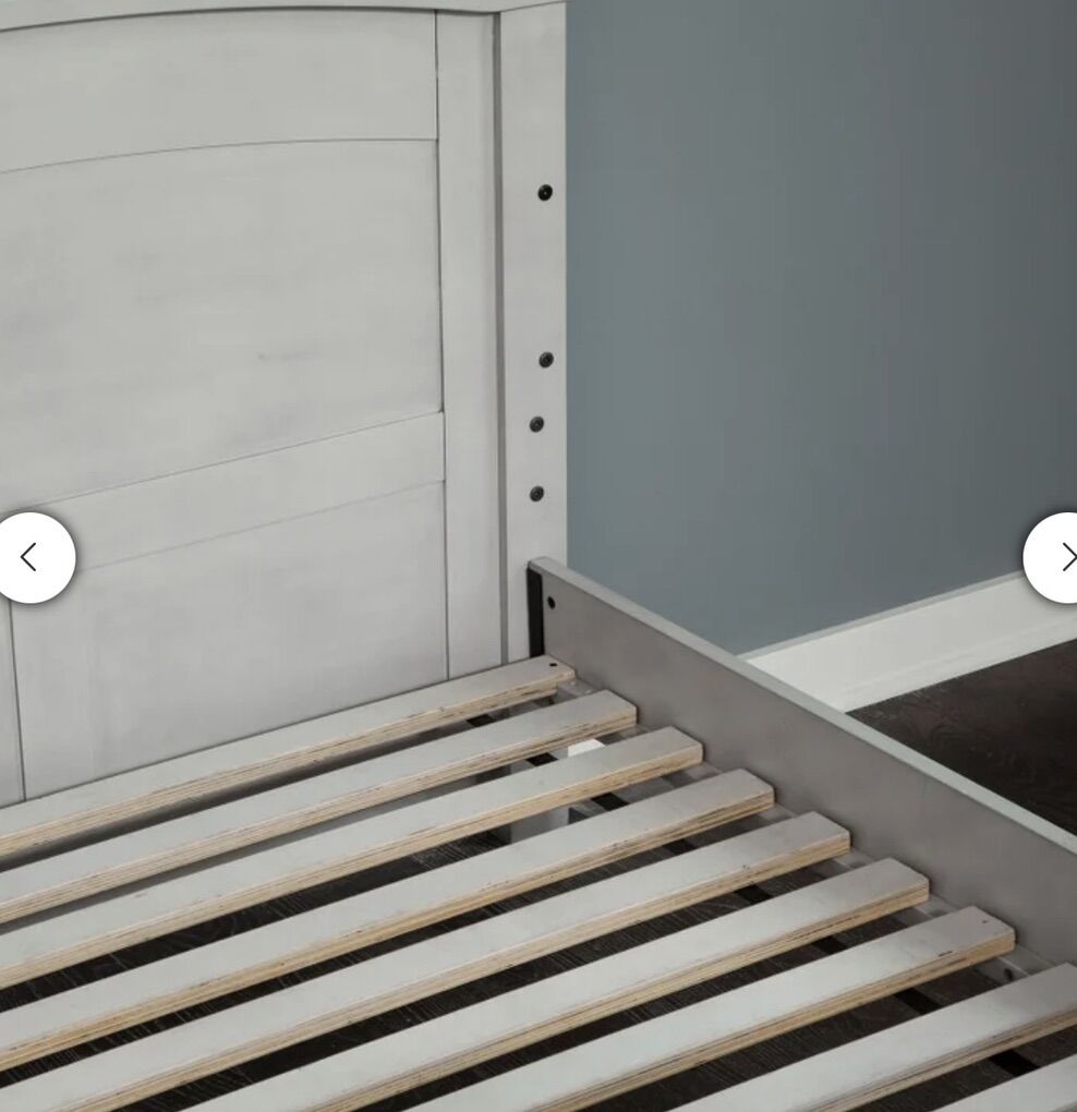 Constructed from Birch veneers with Rubberwood and Beech solids Slat rolls included Short guard rail can be attached for left or right entry Light Gray finish Dimensions: 58.5 W x 80.7 D x 75.6 H 274.4 lbs Made in Vietnam